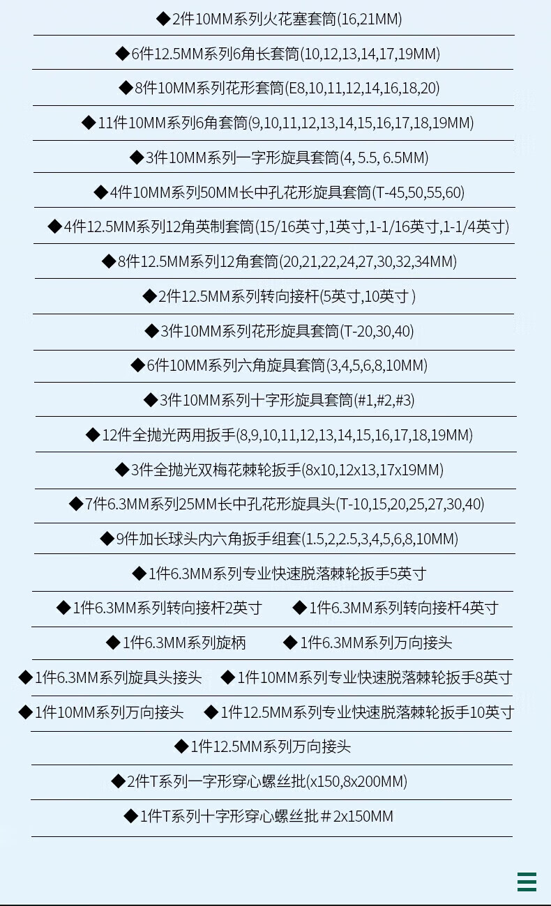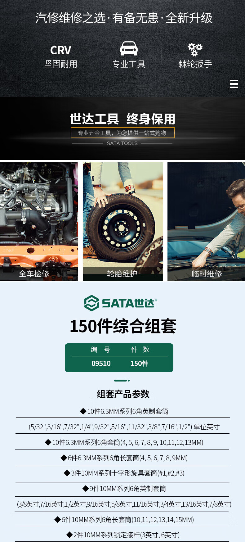 • 商品名称:世达(SATA)150件6.3x10x12.5MM系列综合组套 09510 09510/套