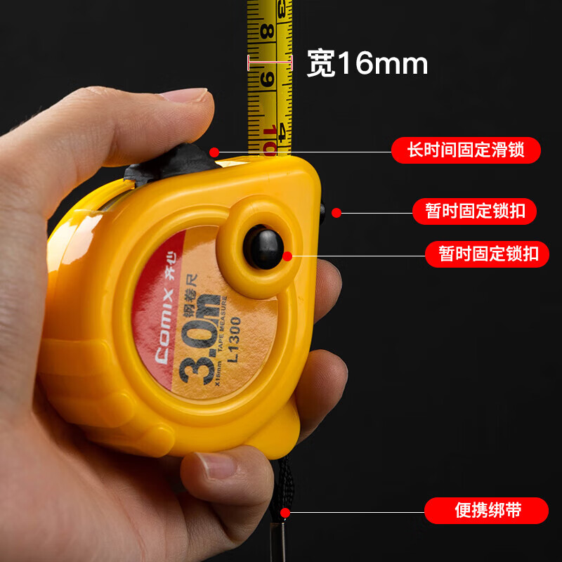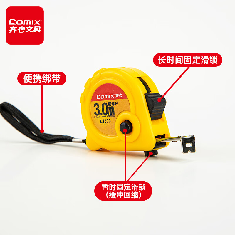 五金/工具  > 测量工具  > 钢卷尺  >  齐心/COMIX  >  齐心(Comix) 3m锁定功能钢卷尺 精准测量木工装修尺子办公用品 L1300 L1300/个
