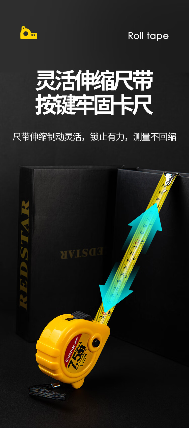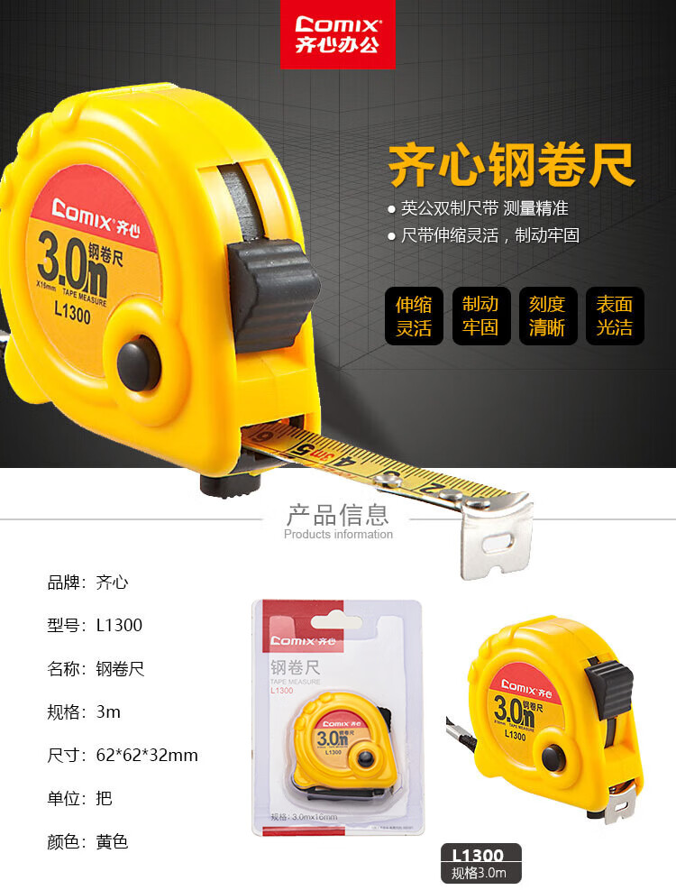 • 商品名称:齐心(Comix) 3m锁定功能钢卷尺 精准测量木工装修尺子办公用品 L1300 L1300/个