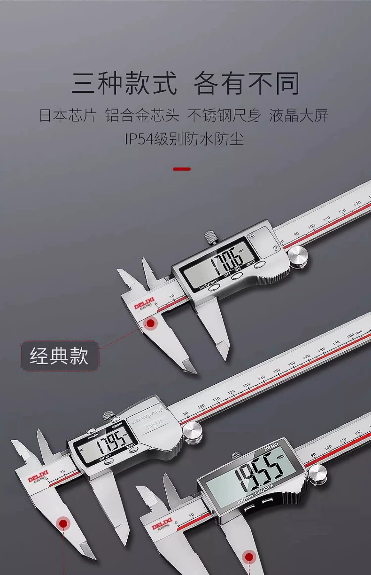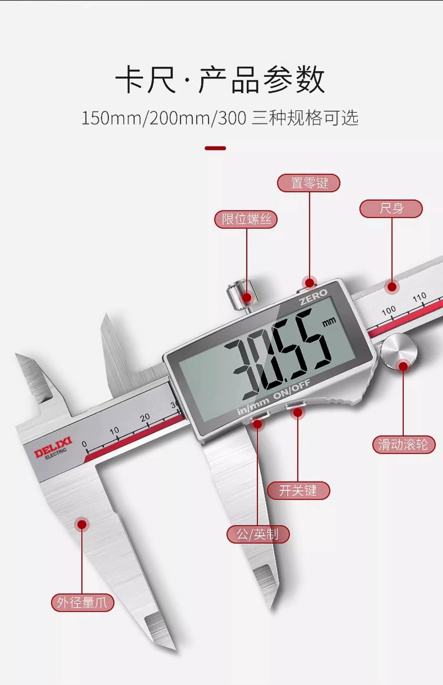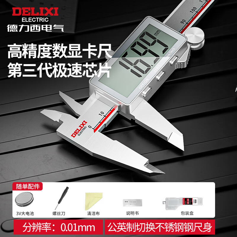 五金/工具  > 测量工具  > 卡尺  >  德力西/DELIXI  >  德力西电子游标卡尺高精度数显工业级油标卡尺数显不锈钢-150mm DWKC-2013/把