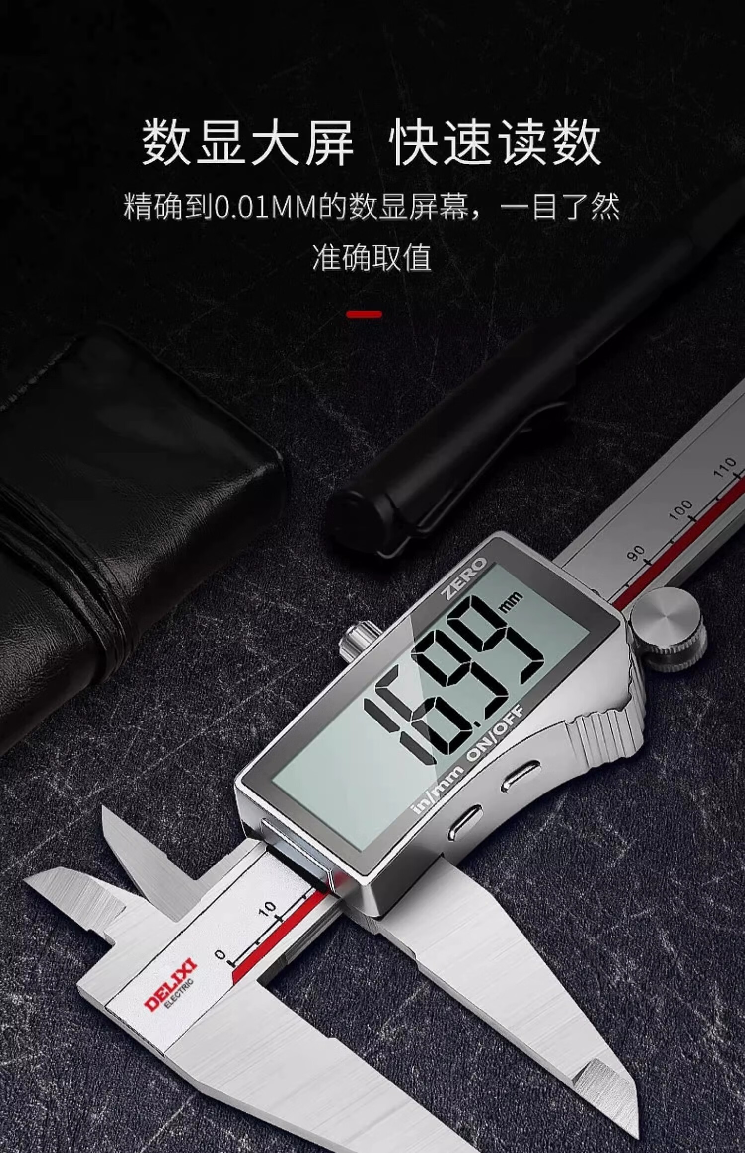 • 商品名称:德力西电子游标卡尺高精度数显工业级油标卡尺数显不锈钢-150mm DWKC-2013/把