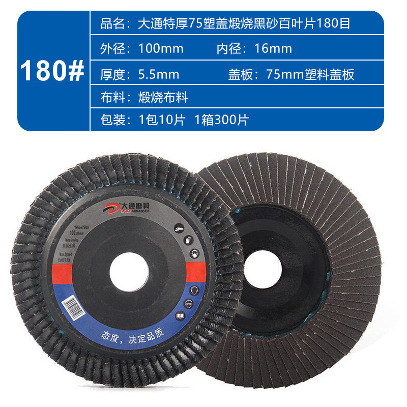 • 商品名称:DATONG塑盖180目煅烧百叶片角磨机打磨片100抛光百叶轮 大通塑盖/包