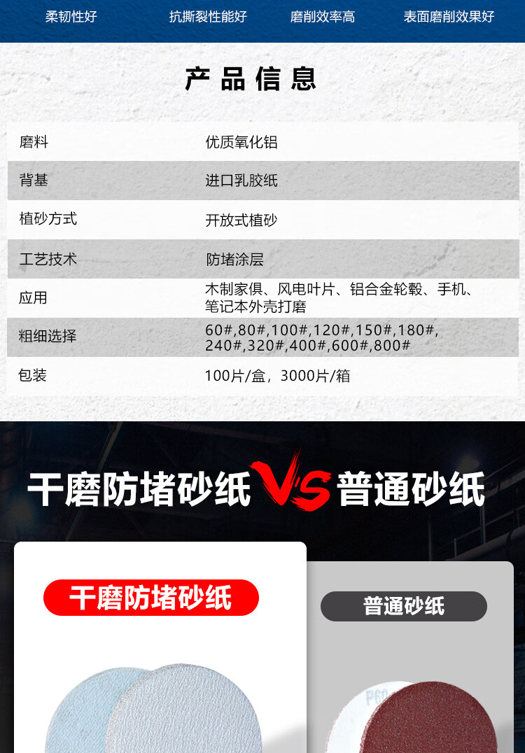 商品名称: DATONG金牛5寸120目干磨圆形砂纸植绒砂纸片白砂打磨片气磨自粘砂纸片 金牛白砂/盒