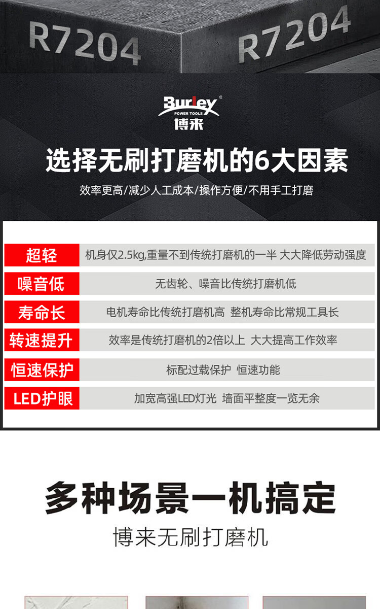商品名称: 博来无刷墙面腻子打磨机电动砂纸机无尘打磨神器 7204 750w 7204/台