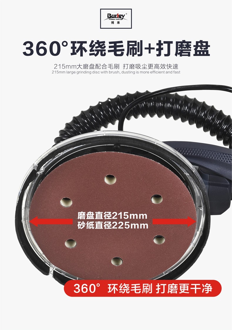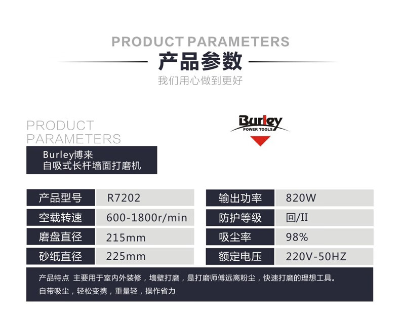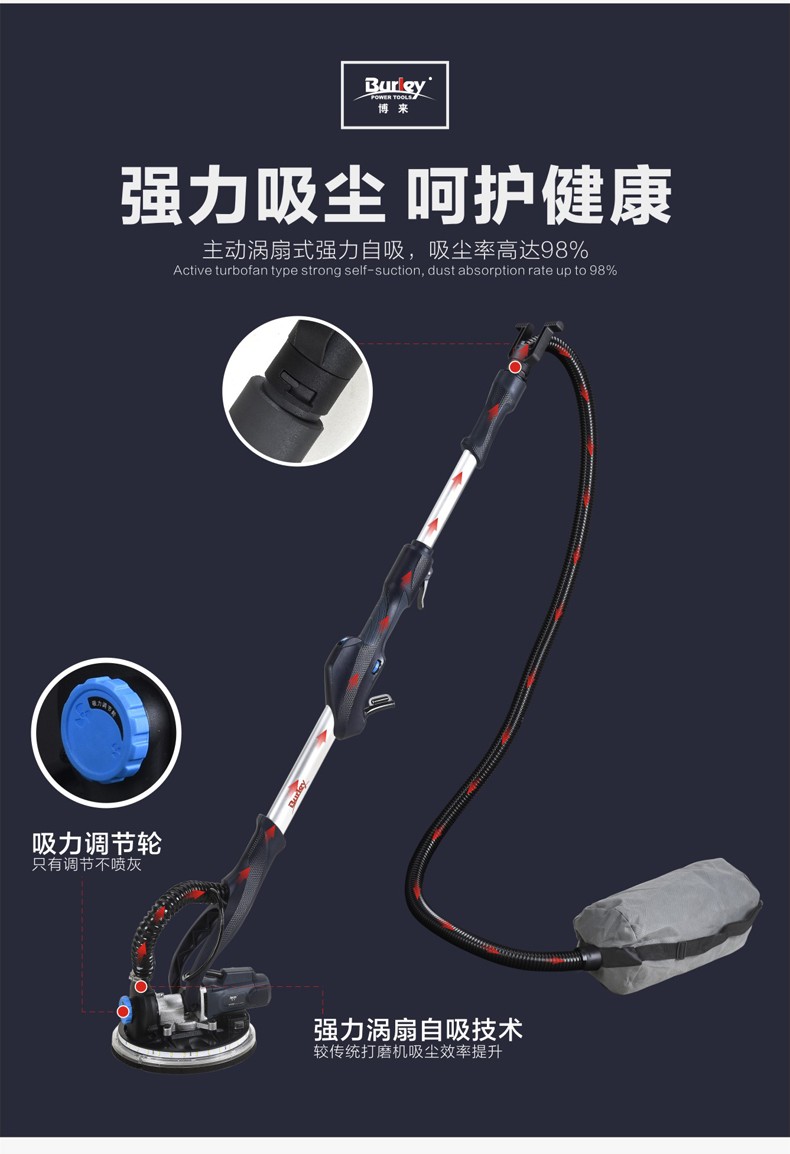 • 商品名称:博来burley自吸无尘墙面打磨机腻子墙壁电动砂纸机长杆磨墙抛光机 7202/台