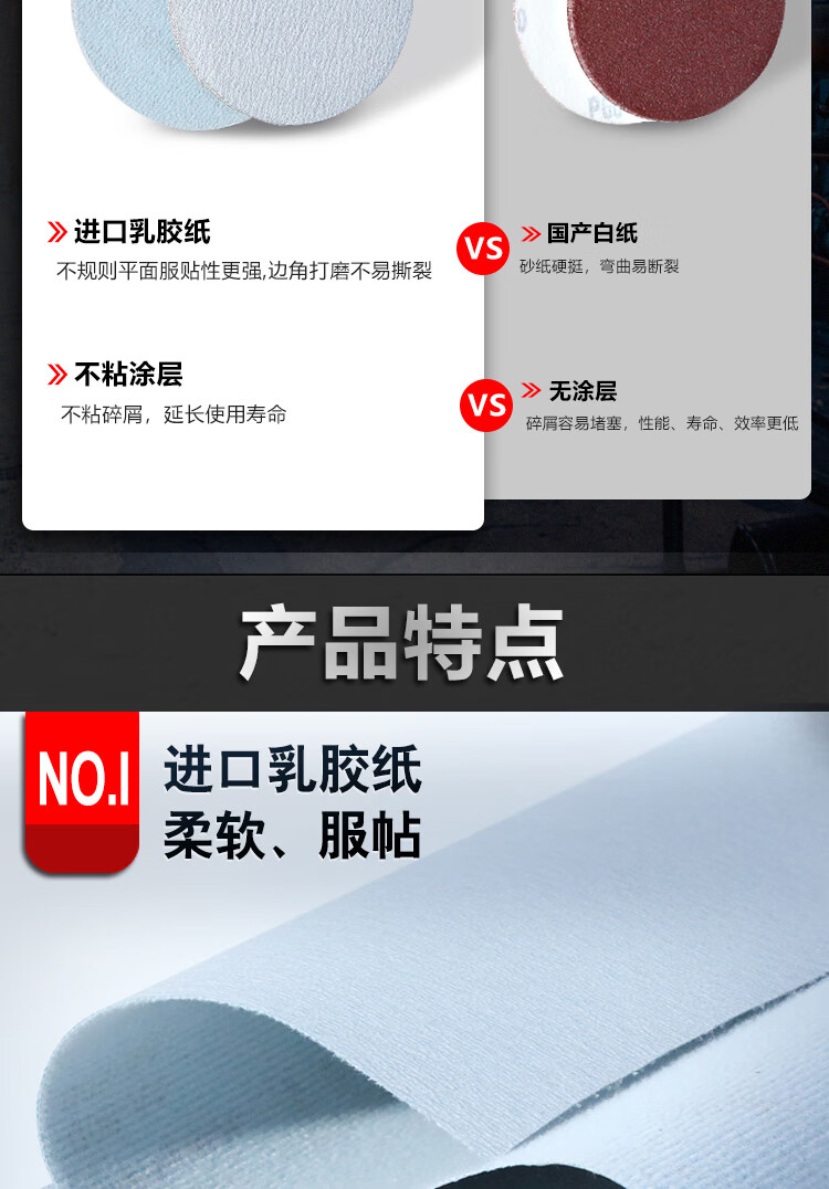 • 商品名称:DATONG金牛5寸400目干磨圆形砂纸植绒砂纸片白砂打磨片气磨自粘砂纸片 金牛白砂/盒