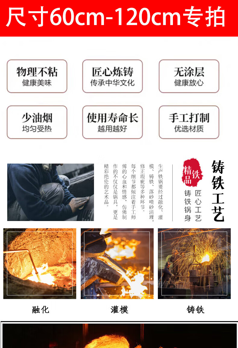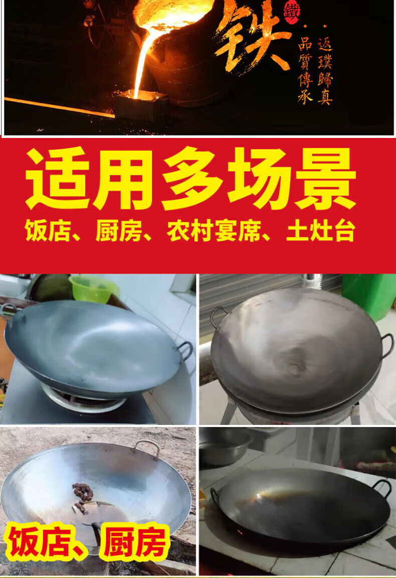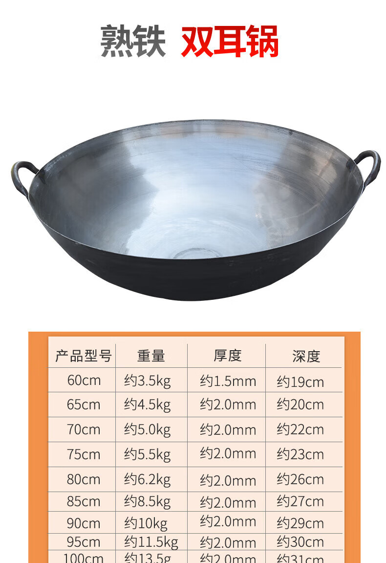 • 商品名称:惠皇 无涂层双耳大铁锅商用燃气灶炒锅可定制 熟铁双耳锅75厘米 无涂层双耳大铁锅商用燃气灶炒锅可定制/个