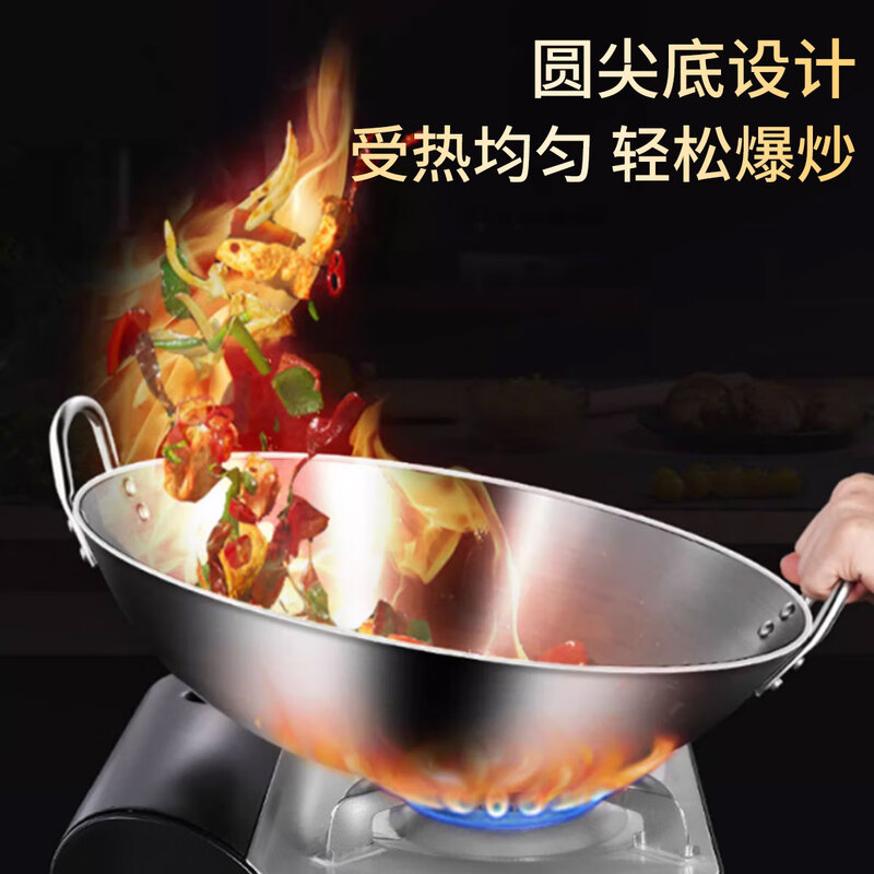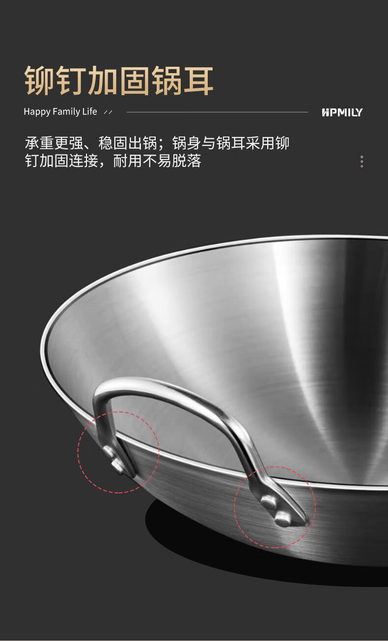厨具  > 烹饪锅具  > 炒锅  >  助家乐/HPMILY  >  助家乐(HPMILY)凹面电磁炉专用锅不锈钢双耳炒锅凹型炒菜锅凹式电灶锅带磁50cm 凹面电磁炉不锈钢双耳炒锅/个