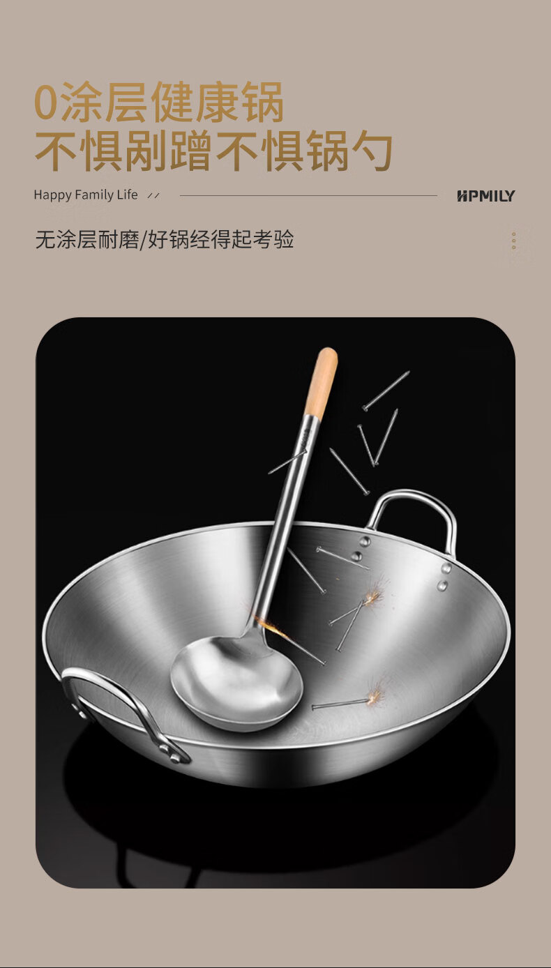厨具  > 烹饪锅具  > 炒锅  >  助家乐/HPMILY  >  助家乐(HPMILY)凹面电磁炉专用锅不锈钢双耳炒锅凹型炒菜锅凹式电灶锅带磁40cm 凹面电磁炉不锈钢双耳炒锅/个