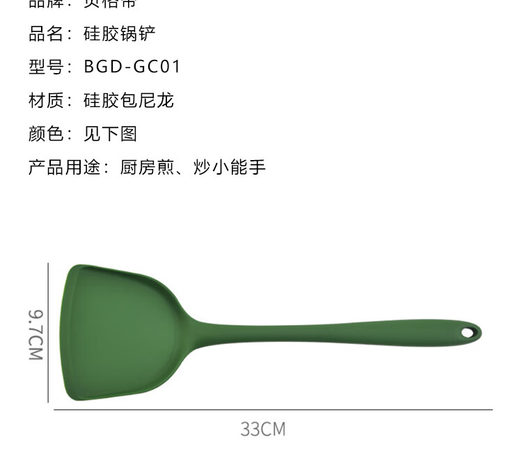 商品名称: 贝格帝硅胶锅铲 炒锅不粘锅专用食品级硅胶铲耐高温炒菜铲子BGD-GC01 BGD-GC01/个