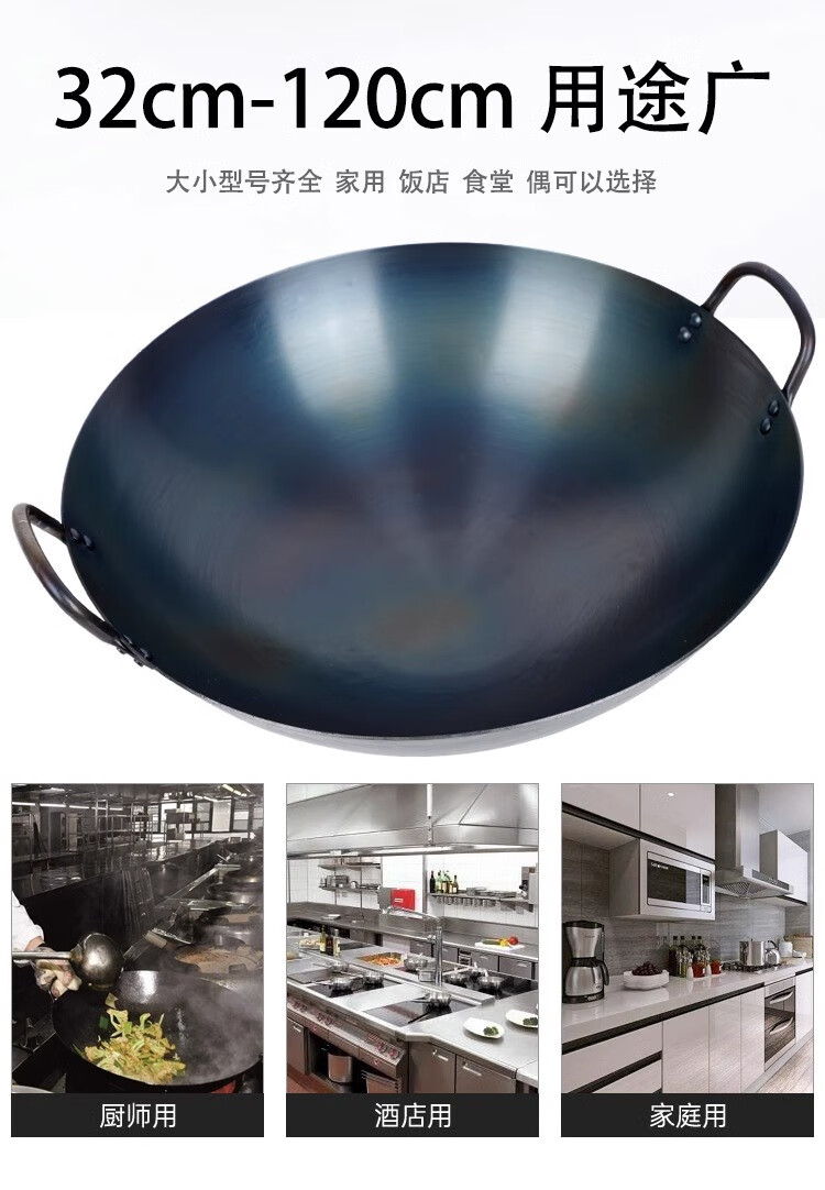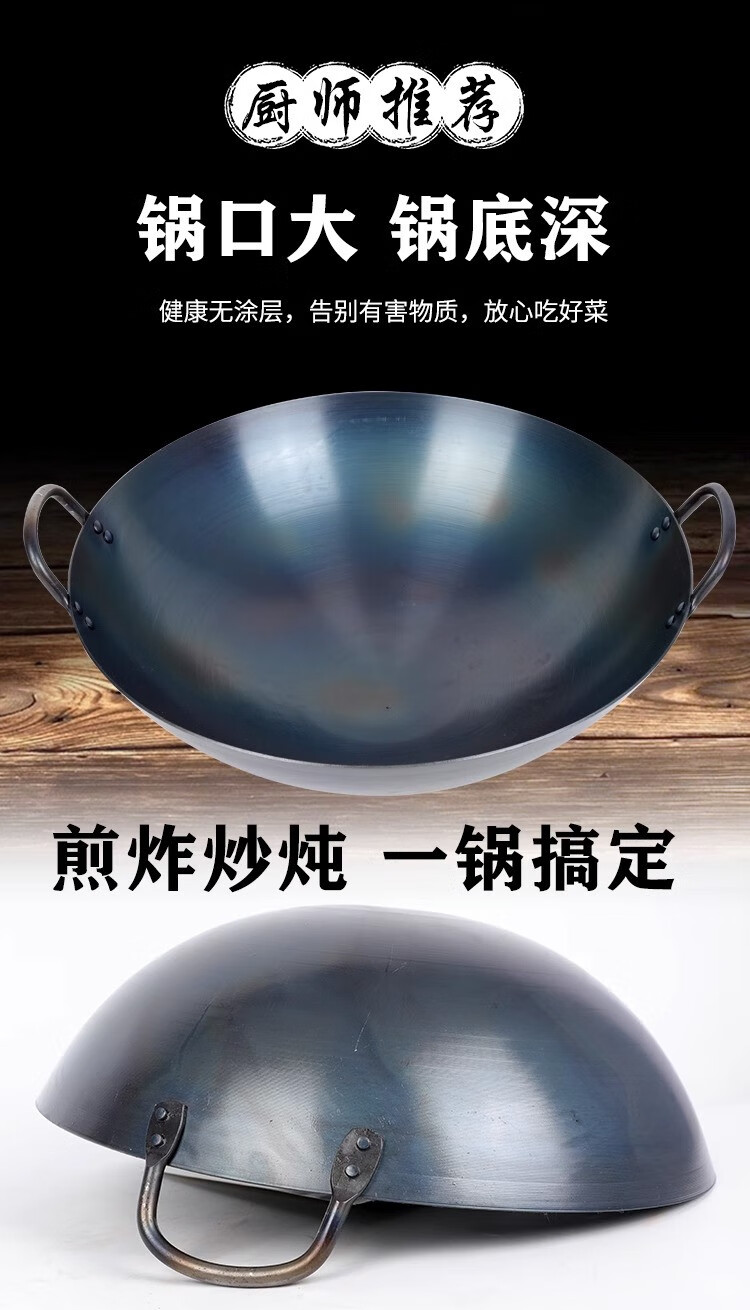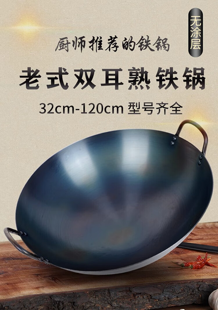 • 商品名称:素流年双耳商用铁锅手工锻打无涂层炒锅熟铁圆底燃气炉炒菜锅40CM 大铁锅40CM/个
