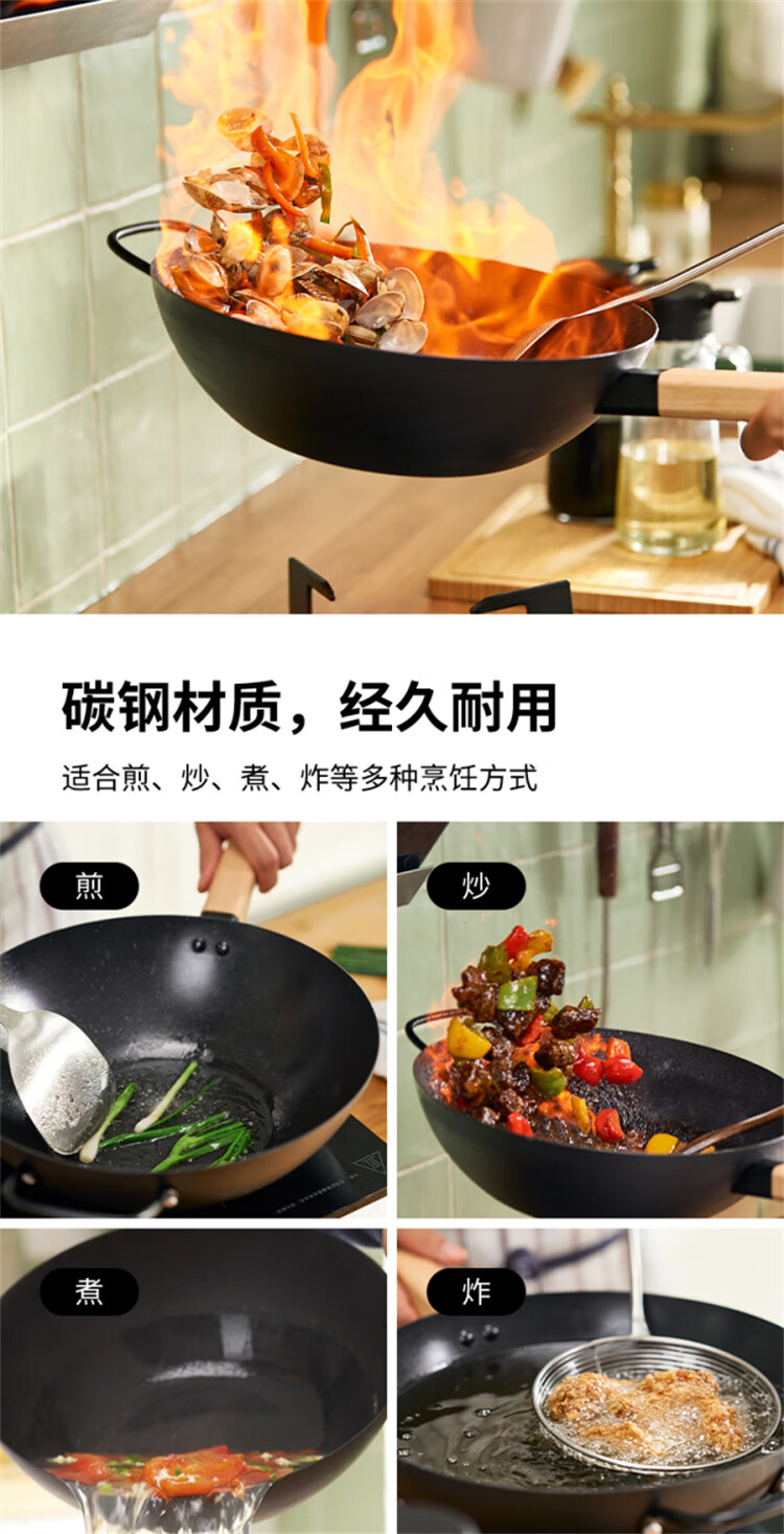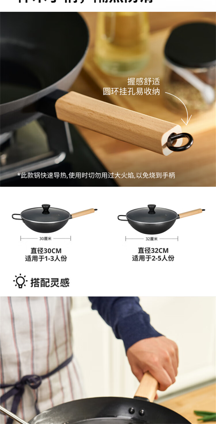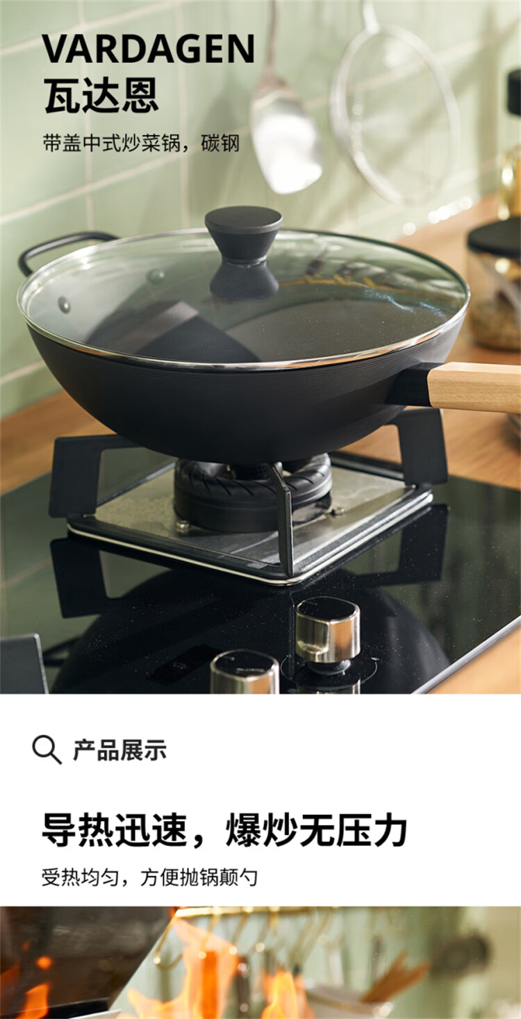 • 商品名称:宜家 IKEA VARDAGEN 瓦达恩 带盖中式炒菜锅 碳钢 32厘米 炒锅/个