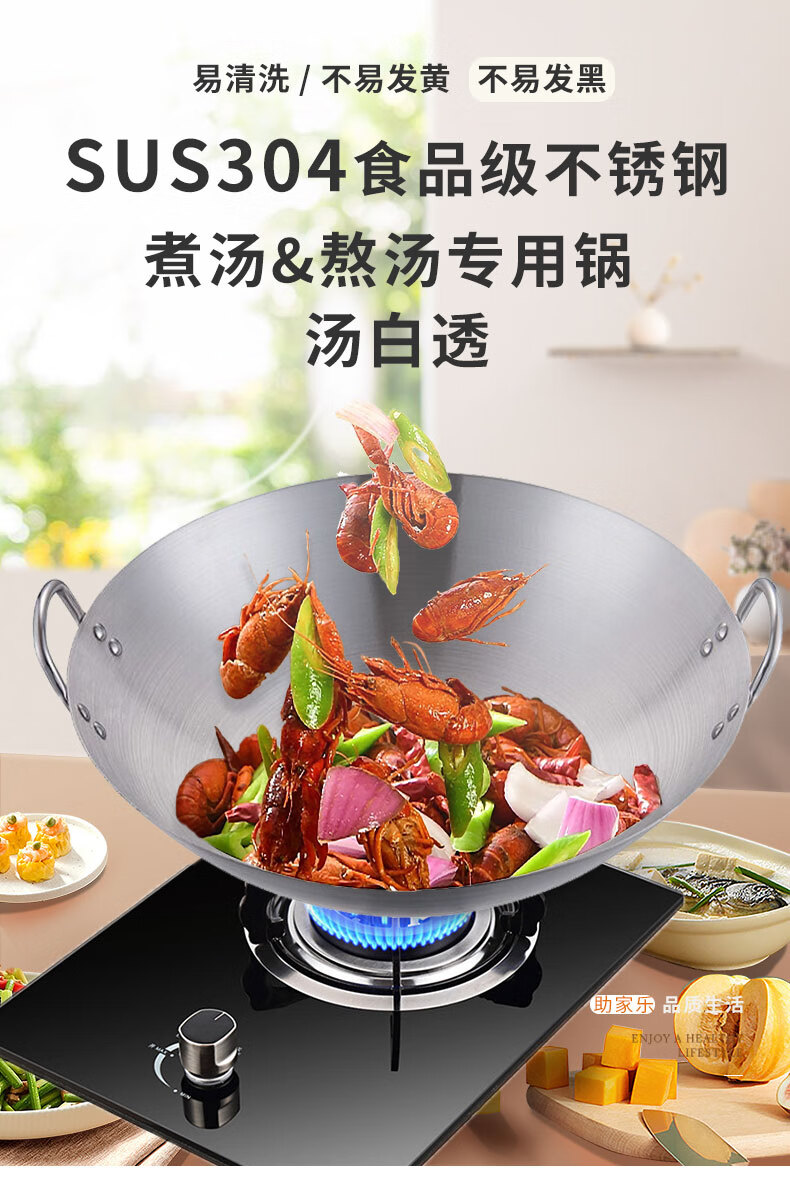 商品名称: 助家乐(HPMILY)煮汤熬汤专用锅304不锈钢双耳炒锅 家用厨房炒锅煤气燃气通用40cm 304不锈钢双耳炒锅/个