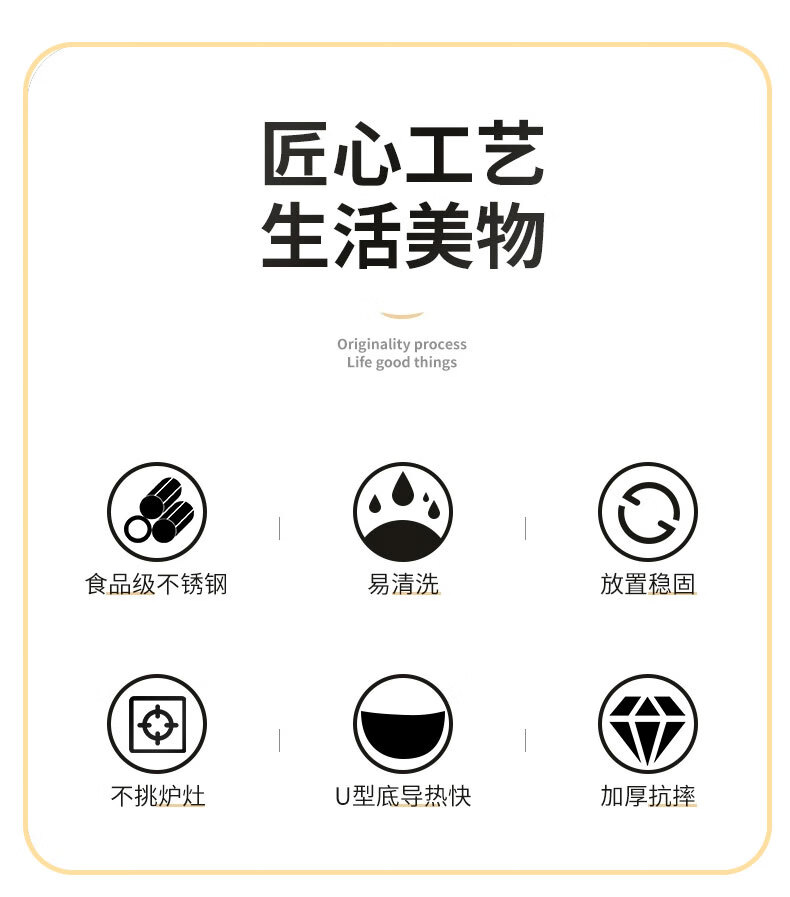 • 商品名称:助家乐(HPMILY)煮汤熬汤专用锅304不锈钢双耳炒锅 家用厨房炒锅煤气燃气通用40cm 304不锈钢双耳炒锅/个