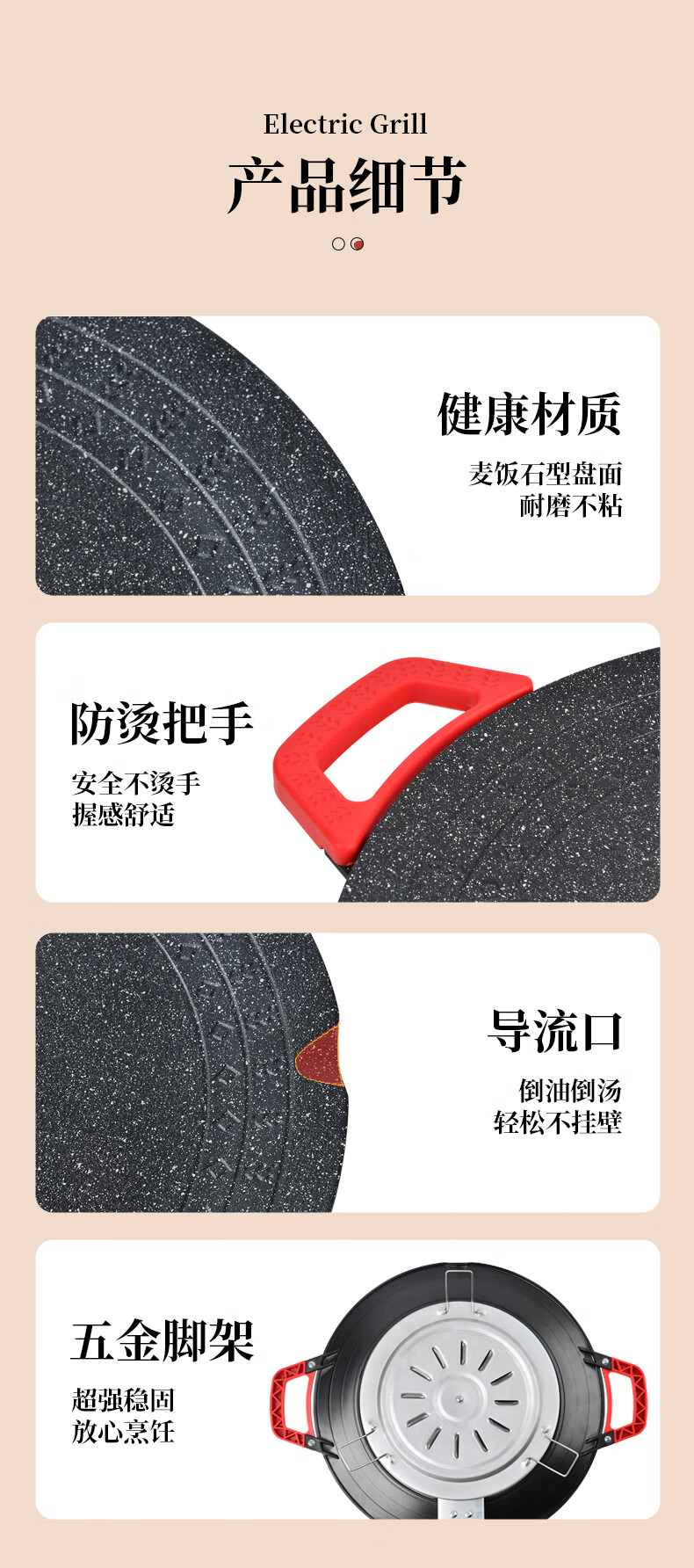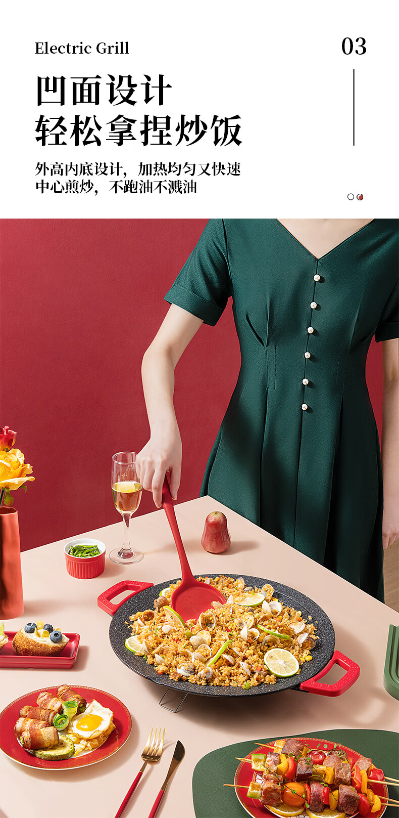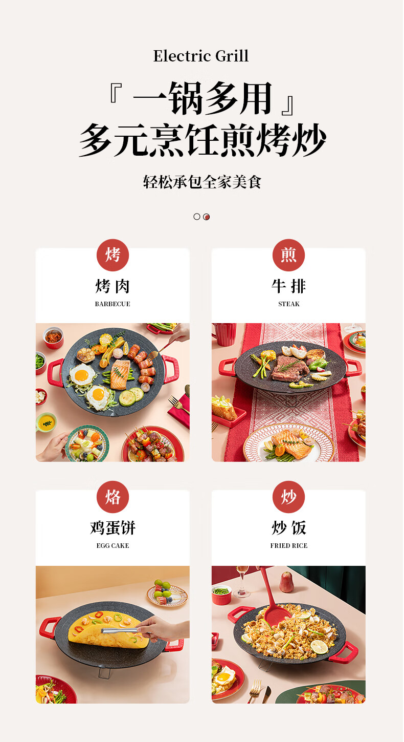 厨具  > 烹饪锅具  > 炒锅  >  火象  >  火象电烤盘家用无烟电烧烤炉麦饭石不粘烤肉锅插电烤盘【36CM】3-6人 HX-DKP020/个