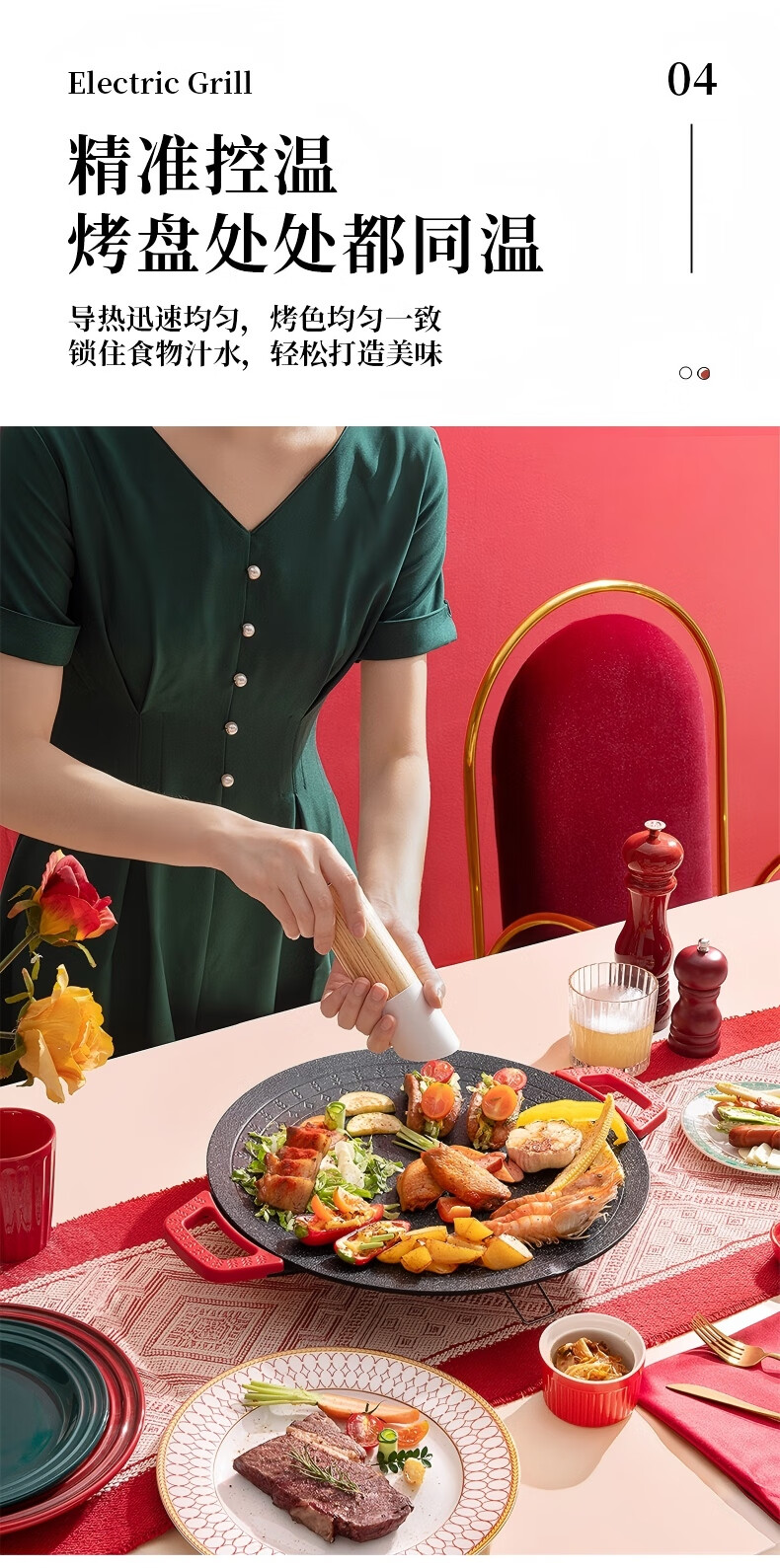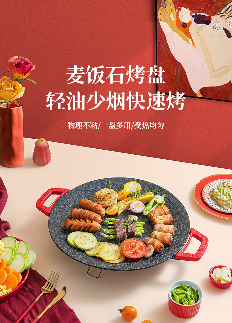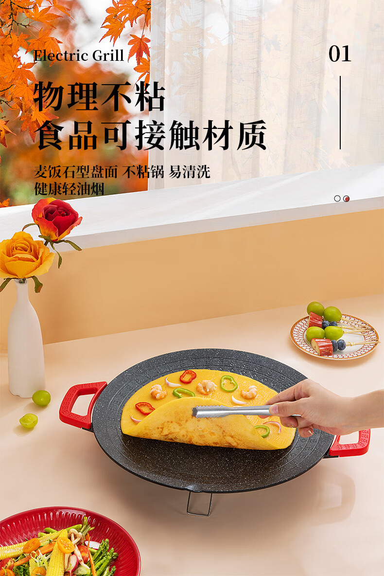 厨具  > 烹饪锅具  > 炒锅  >  火象  >  火象电烤盘家用无烟电烧烤炉麦饭石不粘烤肉锅插电烤盘【36CM】3-6人 HX-DKP020/个