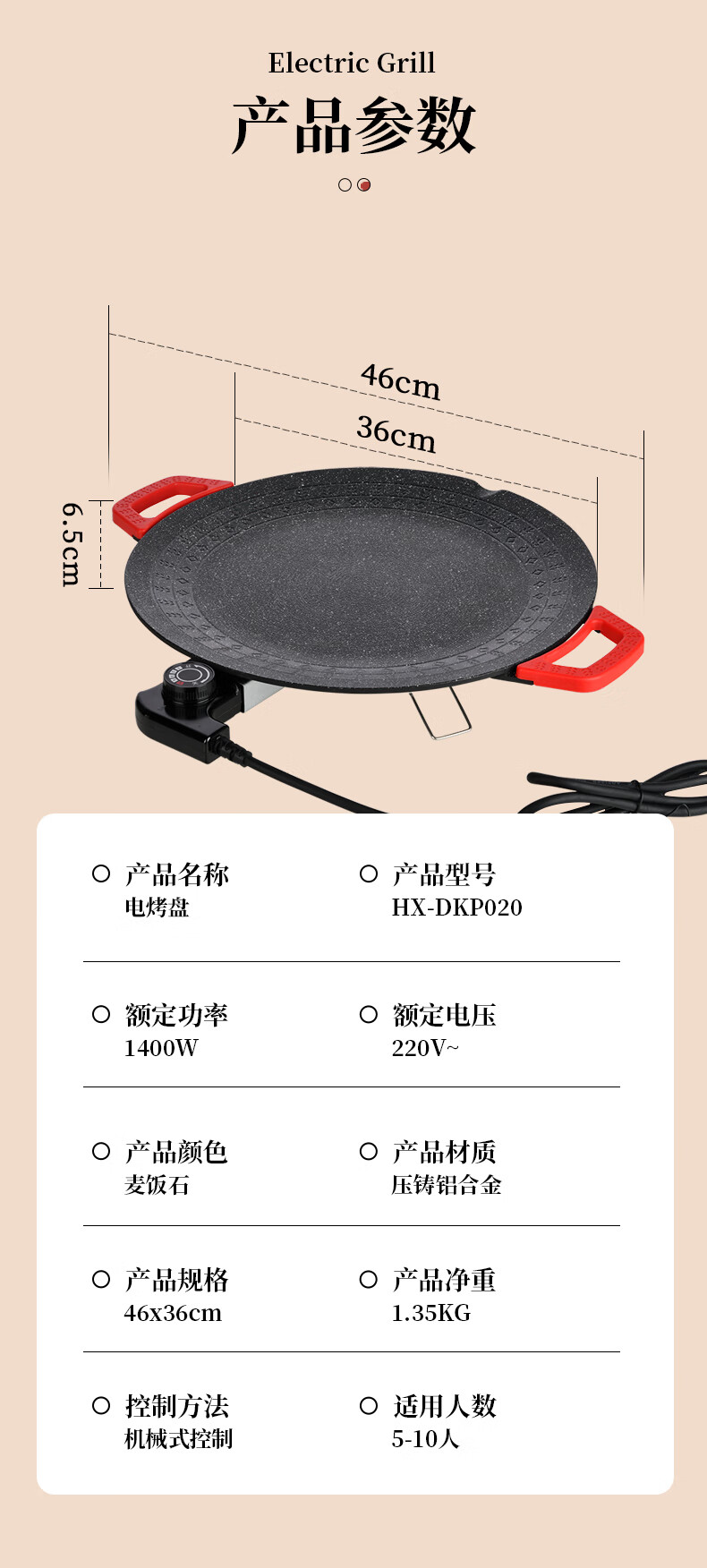 • 商品名称:火象电烤盘家用无烟电烧烤炉麦饭石不粘烤肉锅插电烤盘【36CM】3-6人 HX-DKP020/个