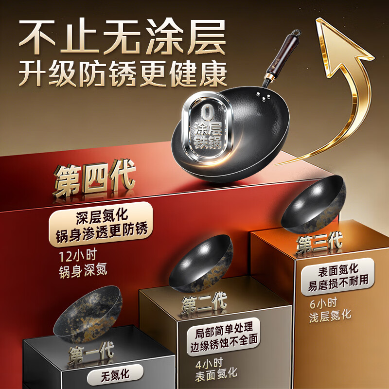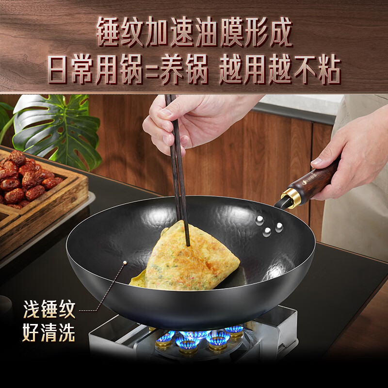 三四钢铁锅炒锅章丘炒菜已开锅无涂层燃气灶爆炒凹面电磁炉32cm 37832 34194 御厨系列:轻量铁锅36cm/个