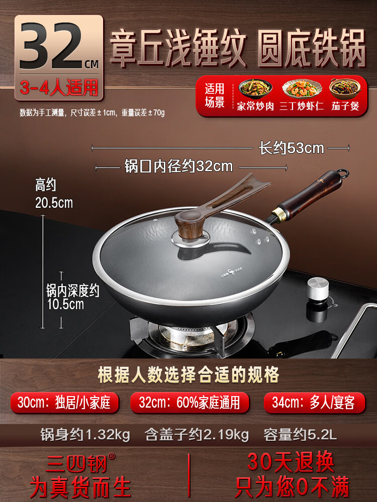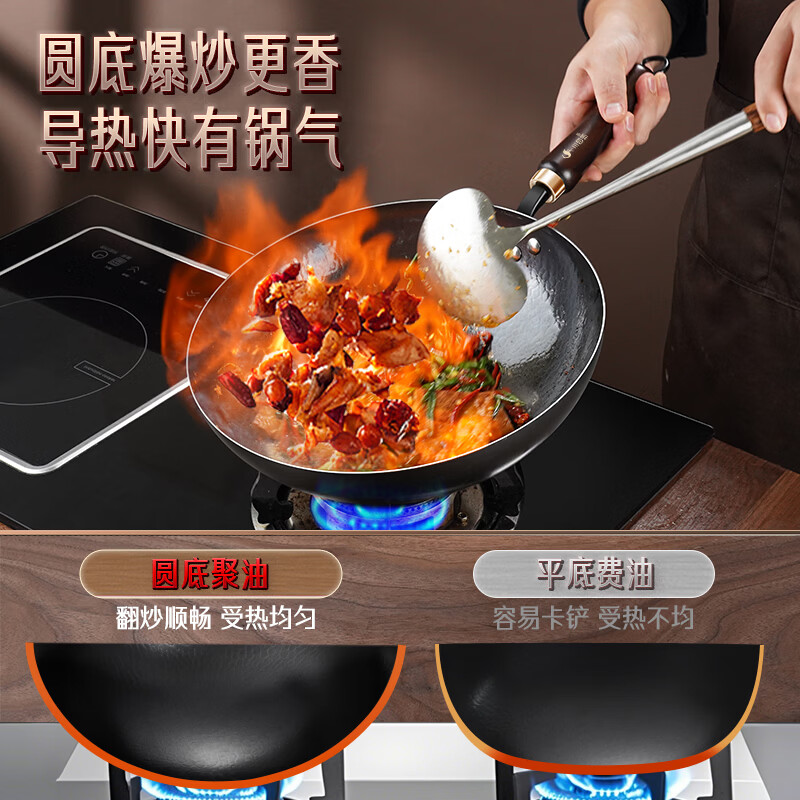 • 商品名称:三四钢铁锅炒锅章丘炒菜已开锅无涂层燃气灶爆炒凹面电磁炉32cm 37832 34194 御厨系列:轻量铁锅36cm/个