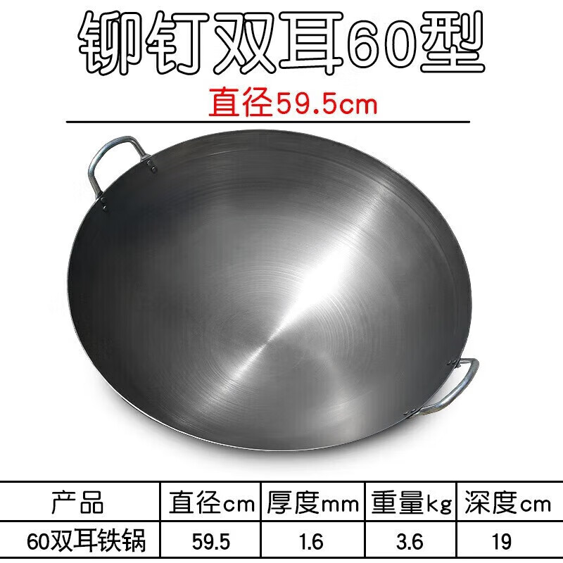 • 商品名称:彩塘智造 熟铁锅无涂层大铁锅双耳铁锅年会礼品可定制 60cm 60cm/个