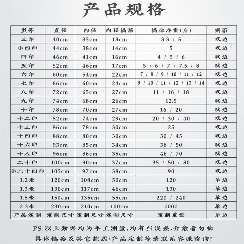 • 商品名称:敏奈 传统农村大铁锅老式加厚铸铁食堂灶台生铁锅 直径82*29 28斤 直径82*29 23斤/个