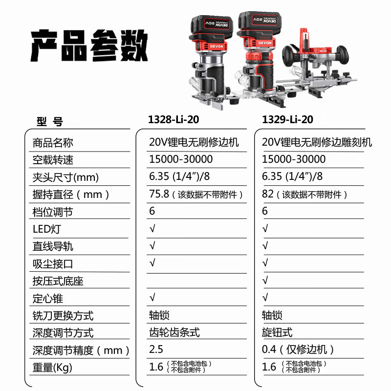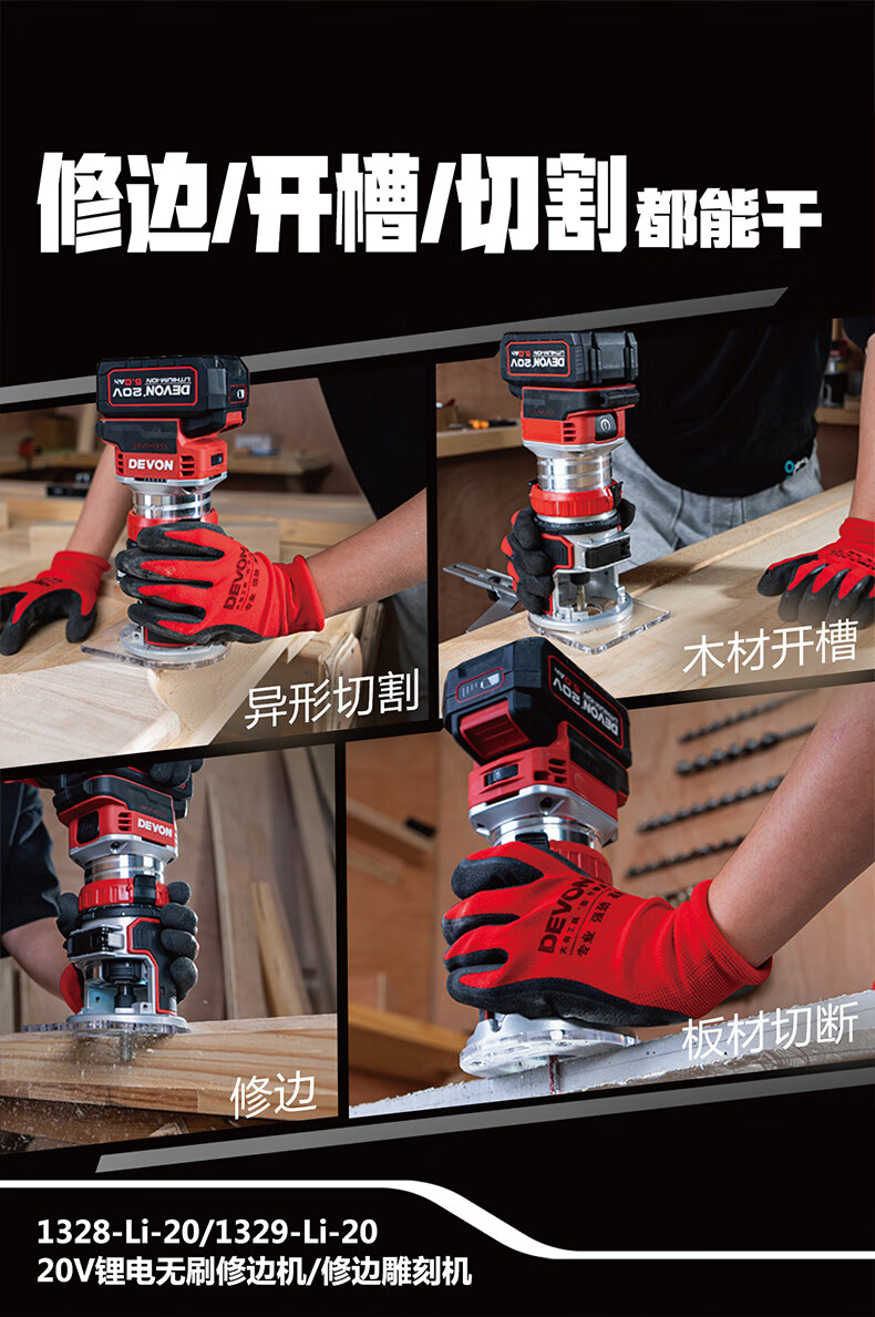 • 商品名称:大有(Devon)20V锂电修边机开槽机电木铣木工工具修边倒角机雕刻机1328 1328/台