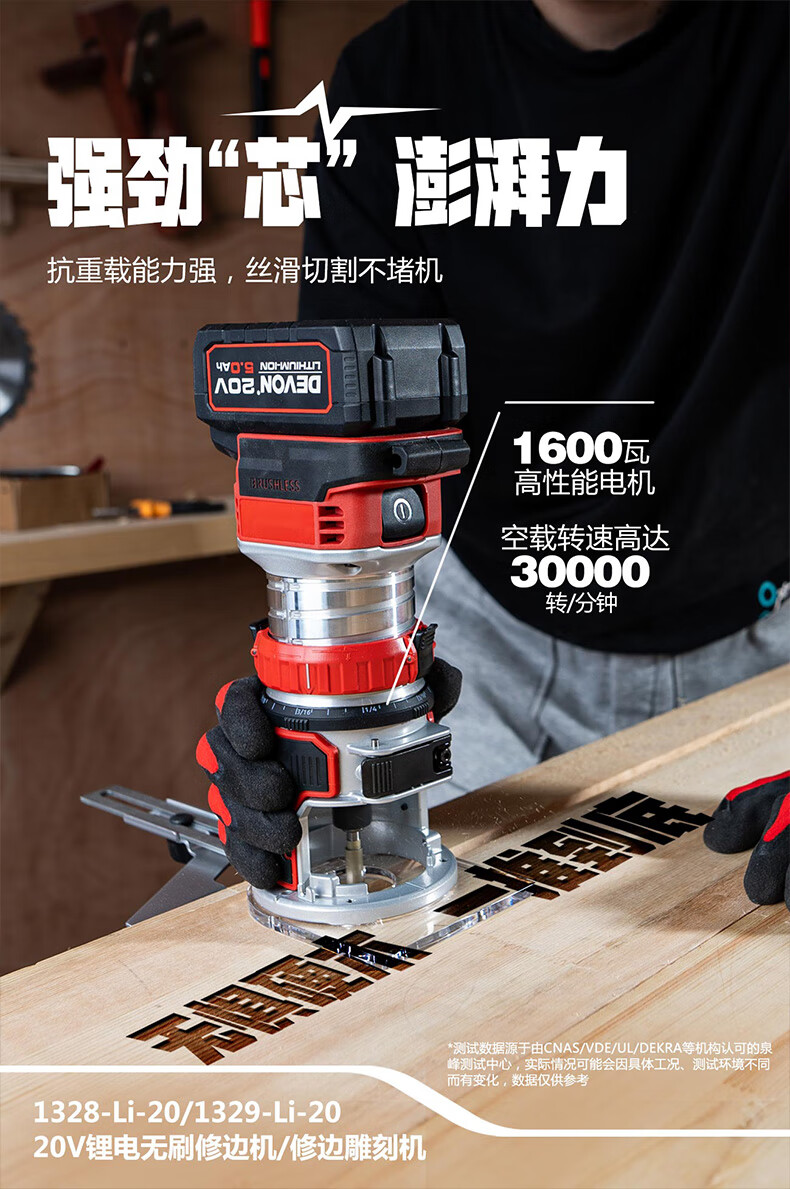 大有(Devon)20V锂电修边机开槽机电木铣木工工具修边倒角机雕刻机1328 1328/台