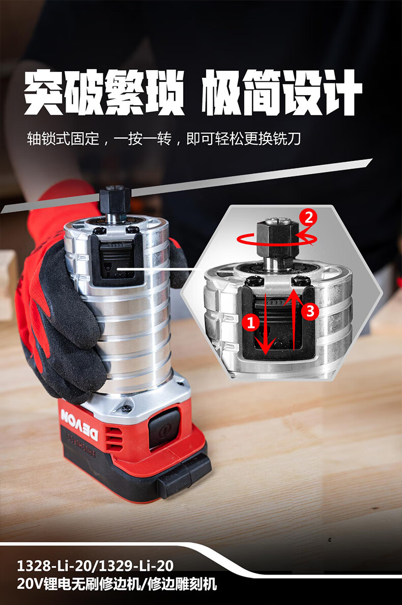 五金/工具  > 电动工具  > 倒角机  >  大有/Devon  >  大有(Devon)20V锂电修边机开槽机电木铣木工工具修边倒角机雕刻机1328 1328/台
