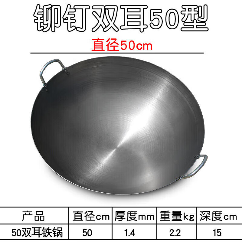 • 商品名称:希耀 双耳铁锅商用饭店熟铁锅老式无涂层大铁锅 双耳铁锅圆底50cm 双耳铁锅圆底50cm/个