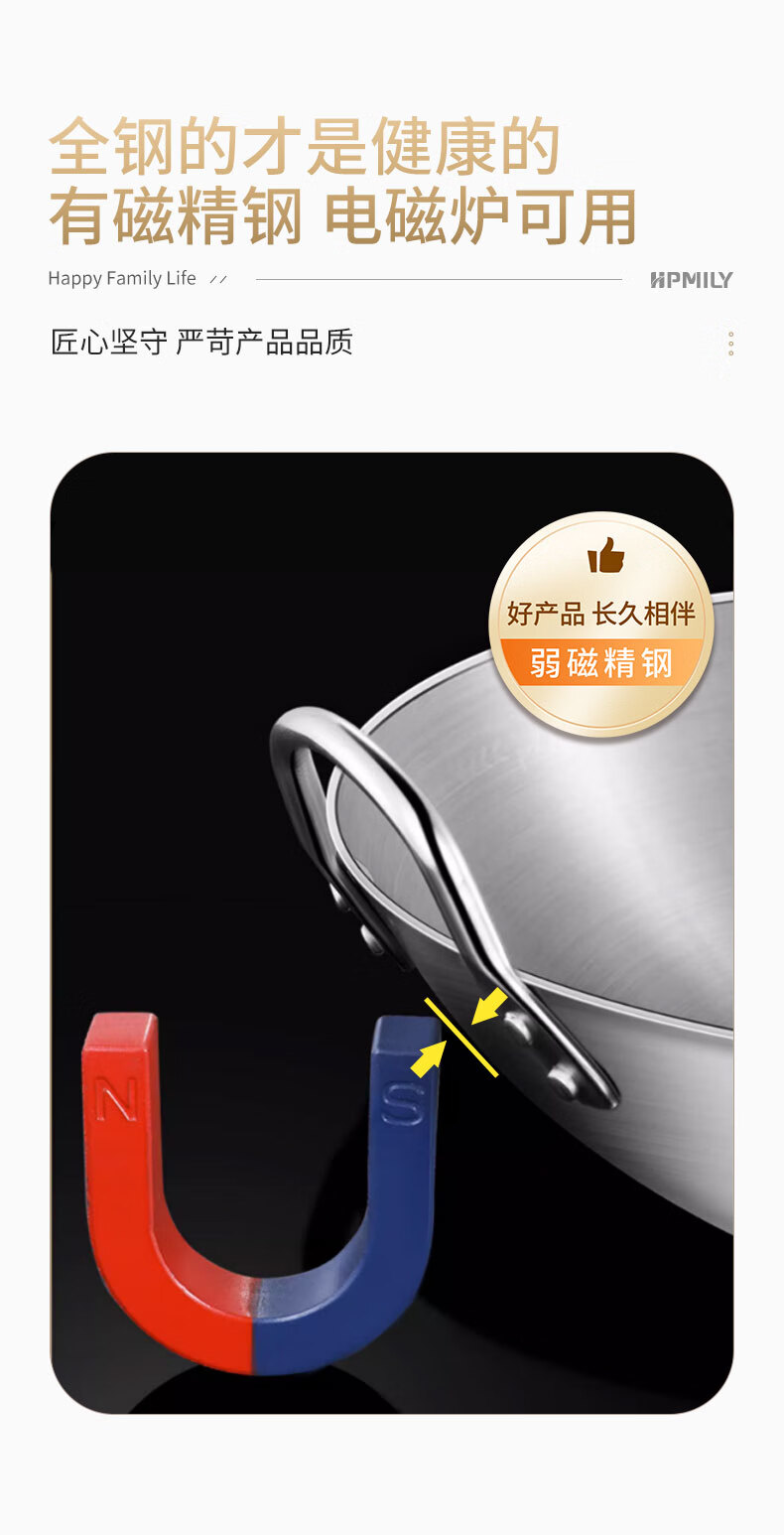 助家乐(HPMILY)凹面电磁炉专用锅不锈钢双耳炒锅凹型炒菜锅凹式电灶锅带磁46cm 凹面电磁炉不锈钢双耳炒锅/个