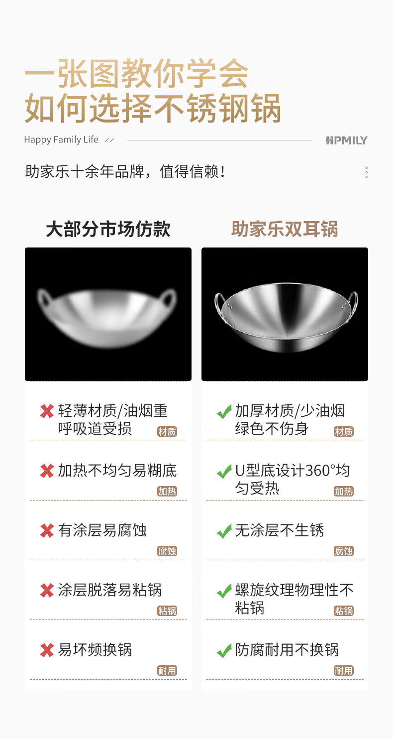 • 商品名称:助家乐(HPMILY)凹面电磁炉专用锅不锈钢双耳炒锅凹型炒菜锅凹式电灶锅带磁46cm 凹面电磁炉不锈钢双耳炒锅/个
