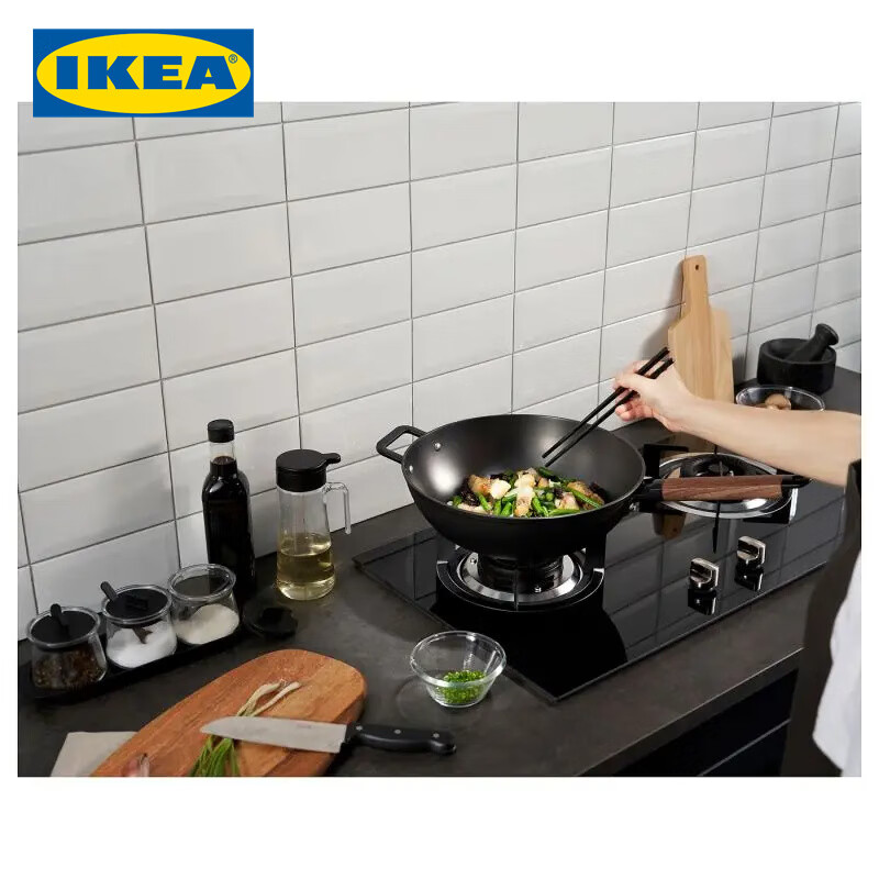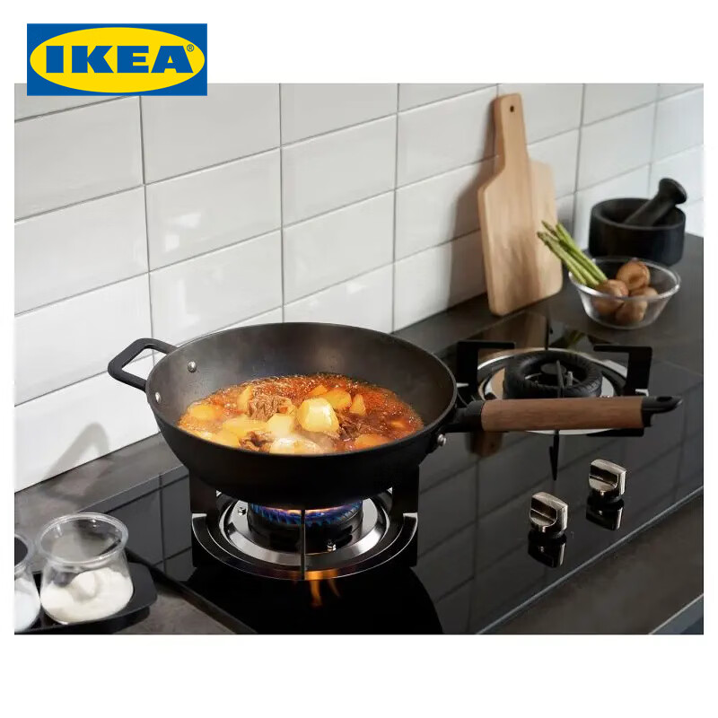 宜家 IKEA VARDAGEN 瓦达恩 带盖中式炒菜锅 铸铁 30厘米 炒锅/个