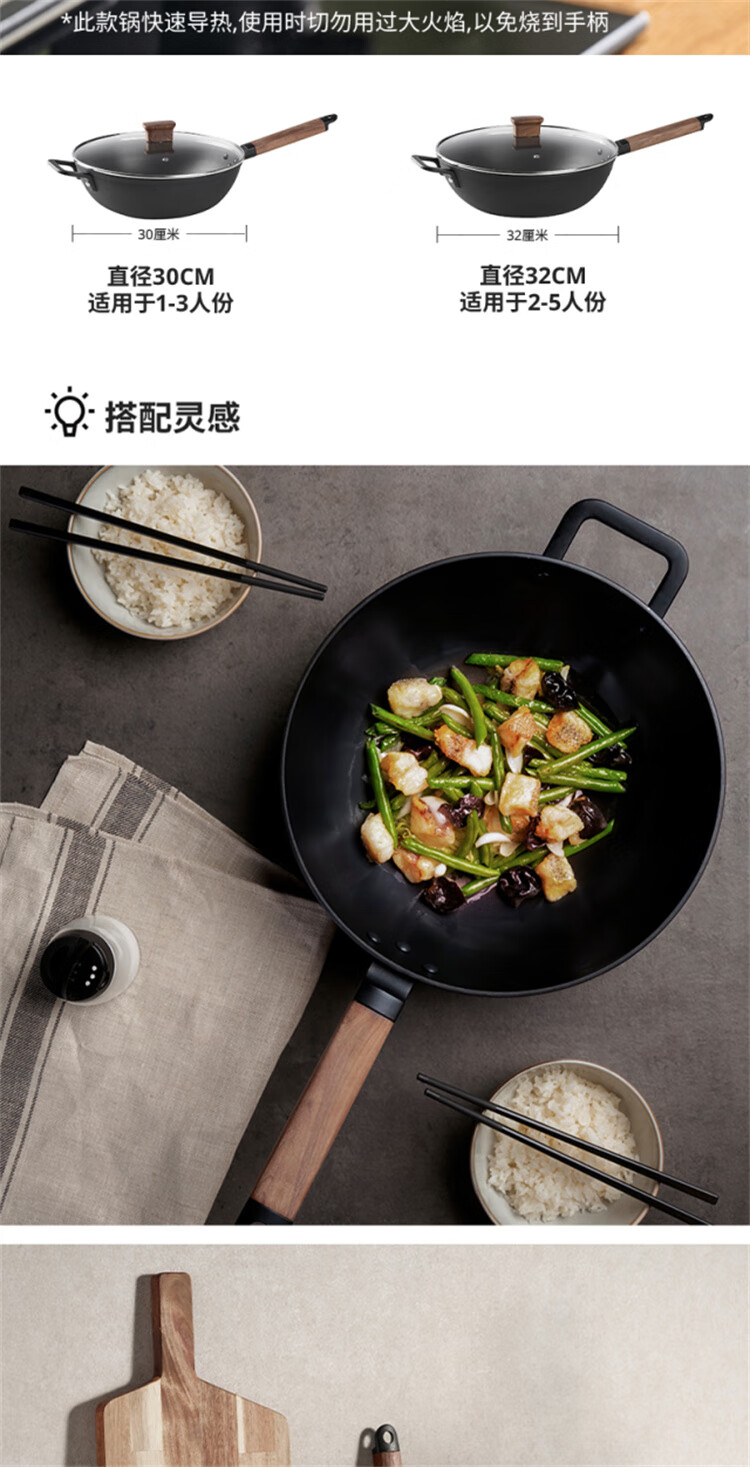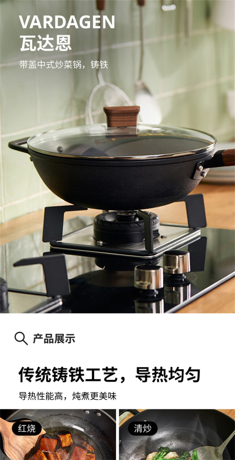 • 商品名称:宜家 IKEA VARDAGEN 瓦达恩 带盖中式炒菜锅 铸铁 30厘米 炒锅/个