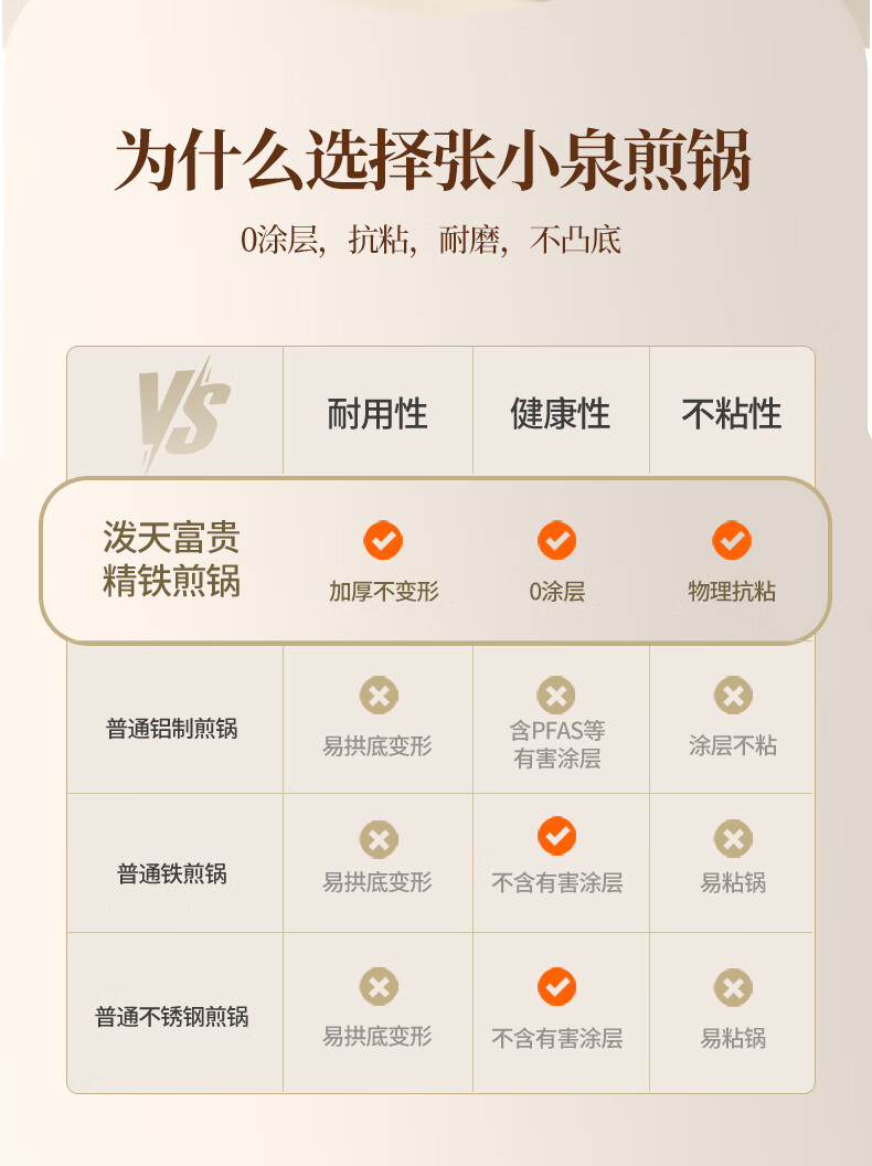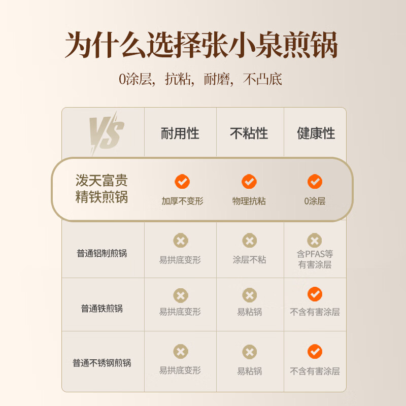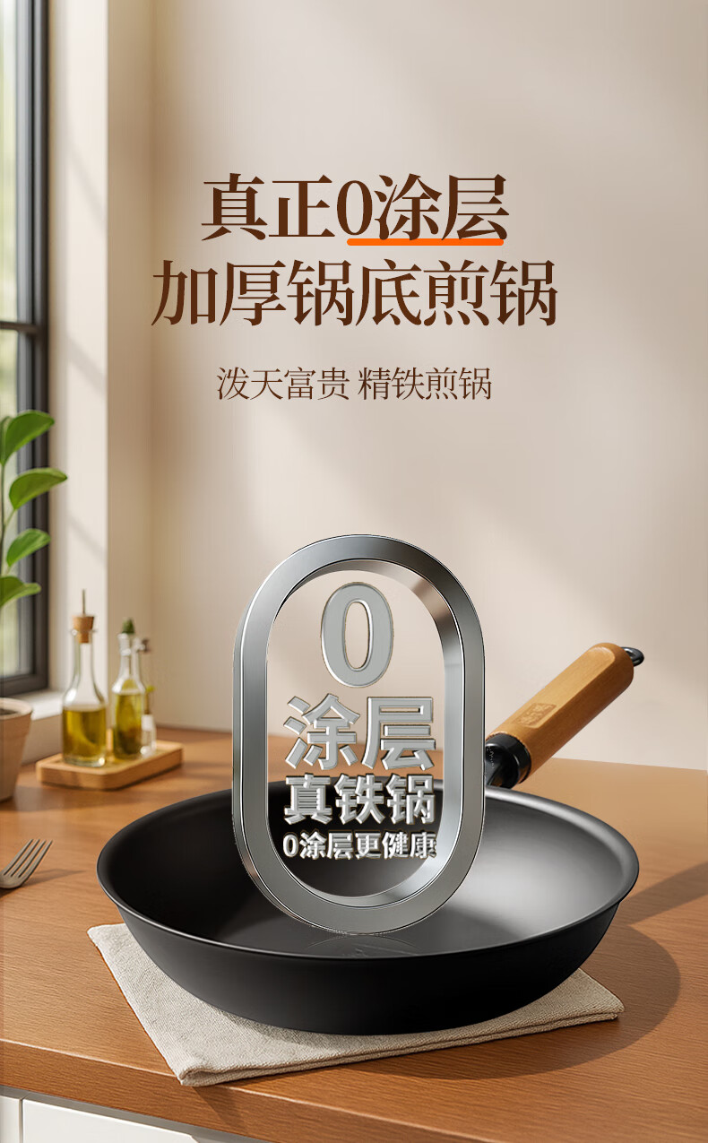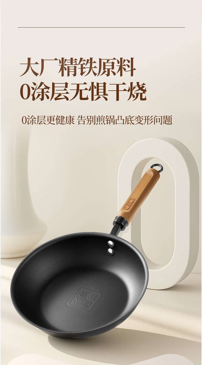 厨具  > 烹饪锅具  > 炒锅  >  张小泉  >  张小泉精铁平底锅家用牛排煎锅少油烟煎饼锅电磁炉燃气灶通用 C33250100 煎锅/个