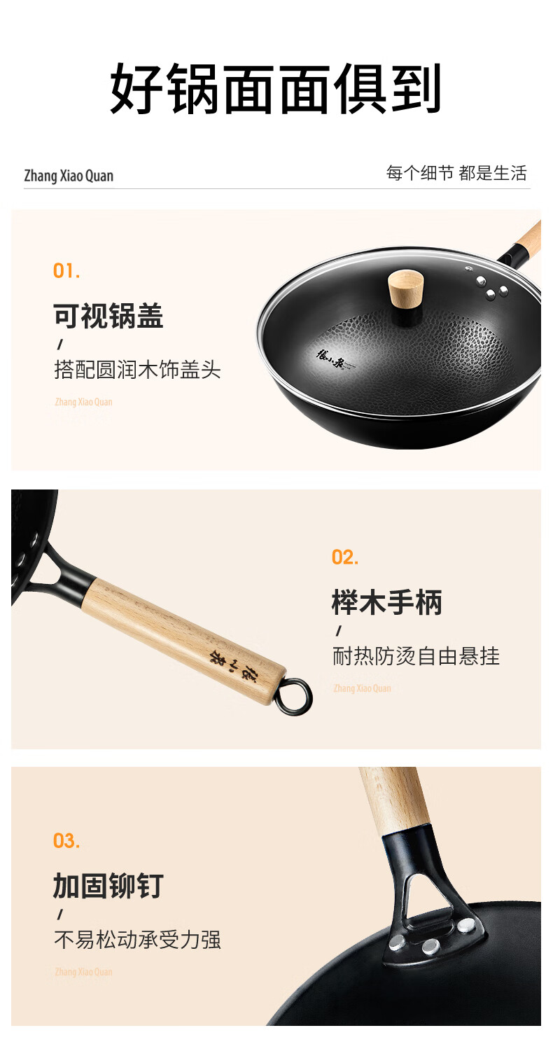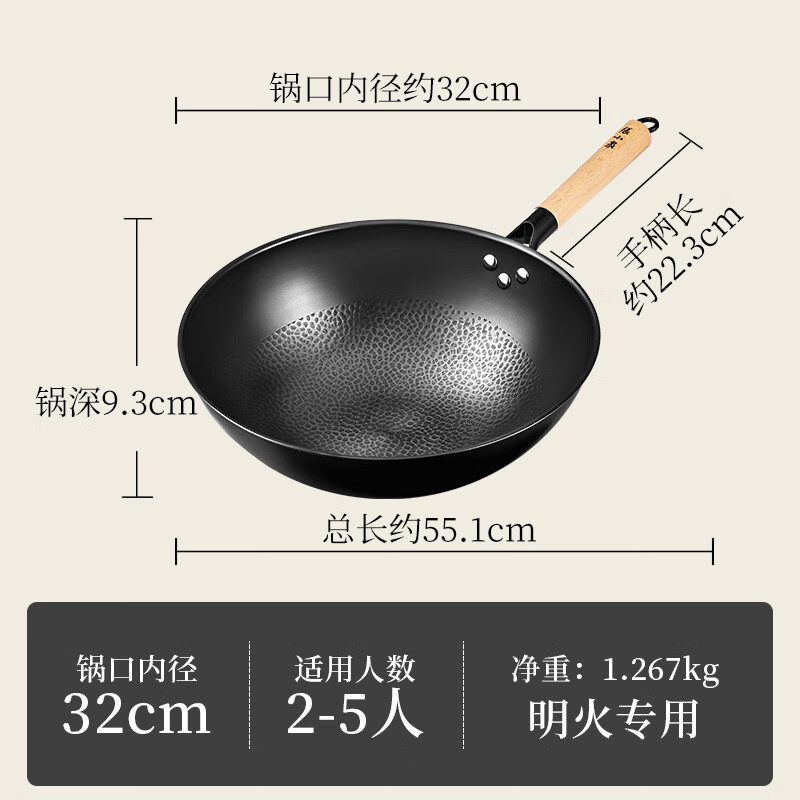 商品名称: 张小泉无涂层中华爆炒锅精铁锅捶纹锅底燃气专用款32cm C30820200 炒锅/个