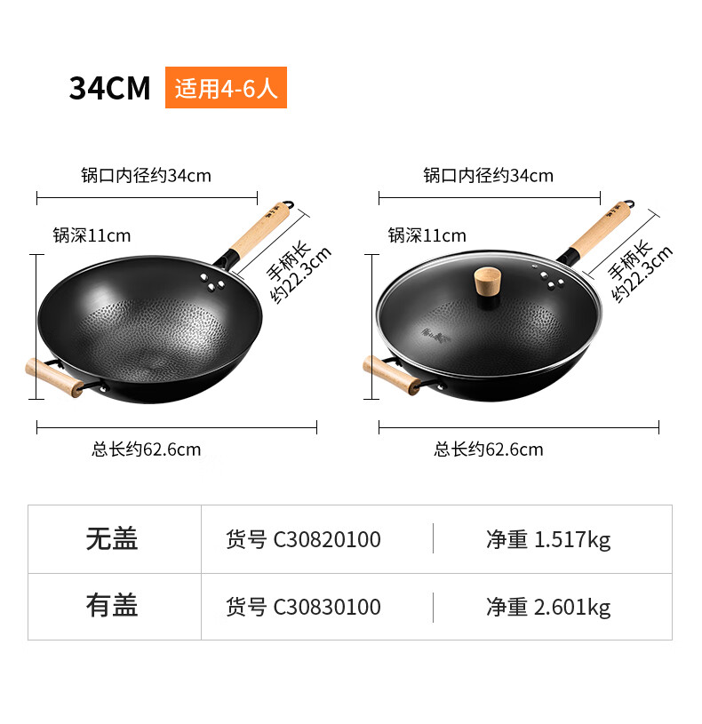 • 商品名称:张小泉无涂层中华爆炒锅精铁锅捶纹锅底燃气专用款32cm C30820200 炒锅/个