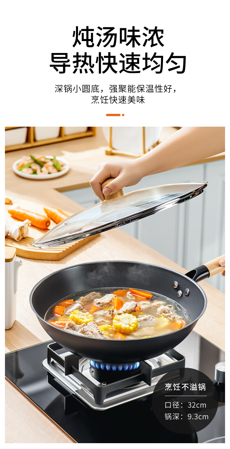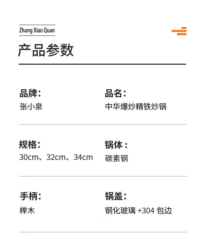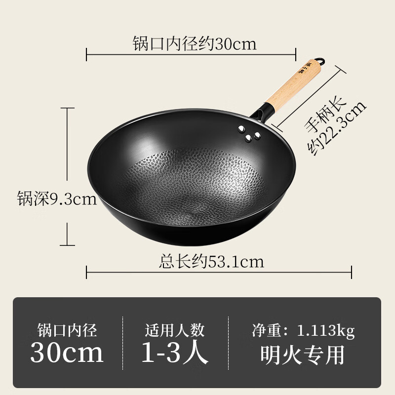 • 商品名称:张小泉无涂层中华爆炒锅精铁锅捶纹锅底燃气专用款30cm C30820300 炒锅/个