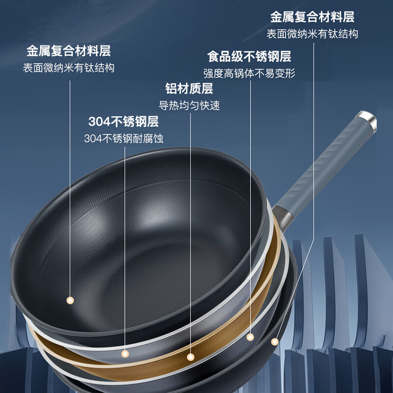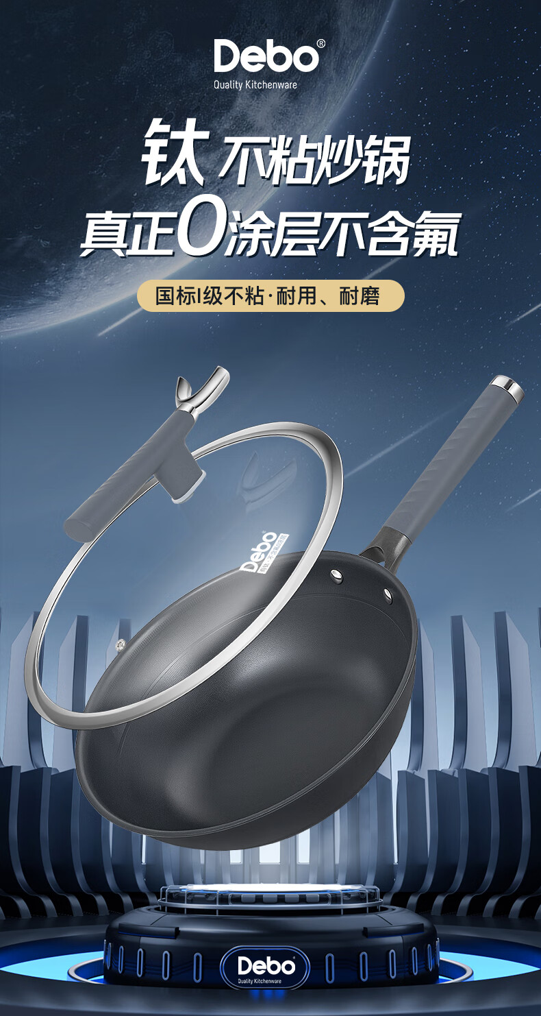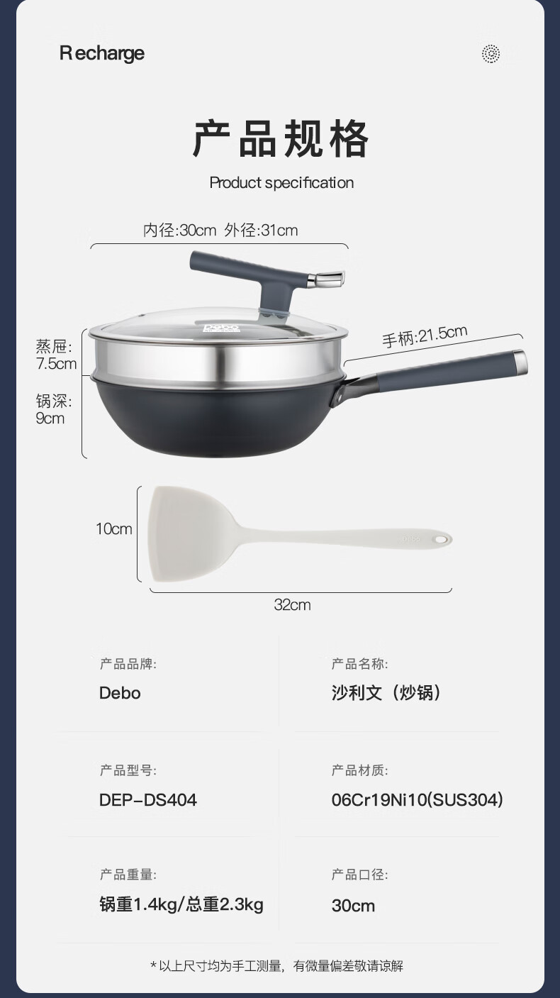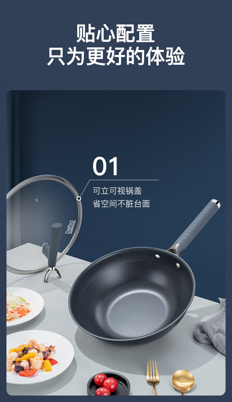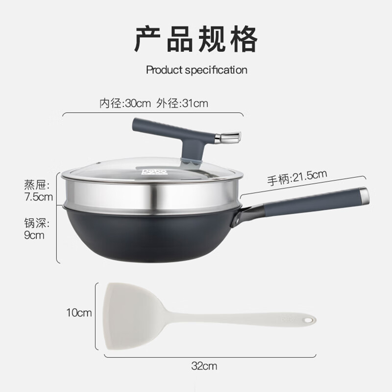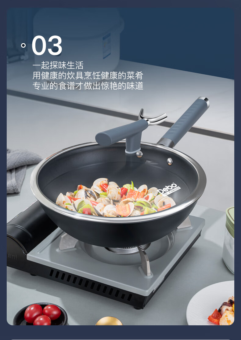 • 商品名称:Debo 德铂炒锅不锈钢有钛不粘锅无涂层带蒸格锅盖硅胶铲DEP-DS404 DEP-DS404/个