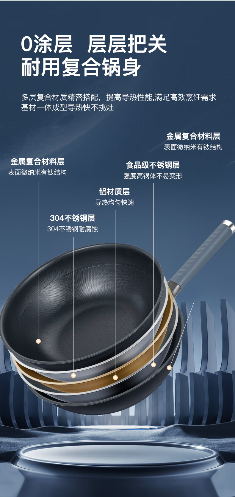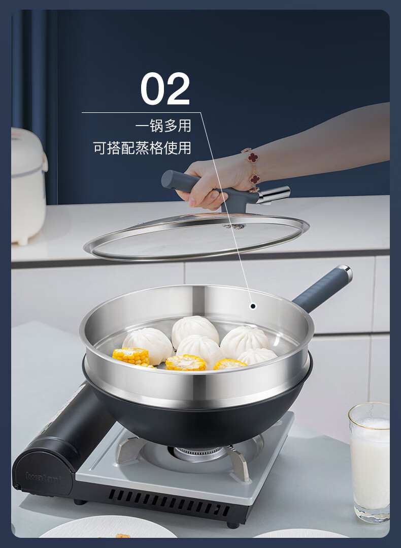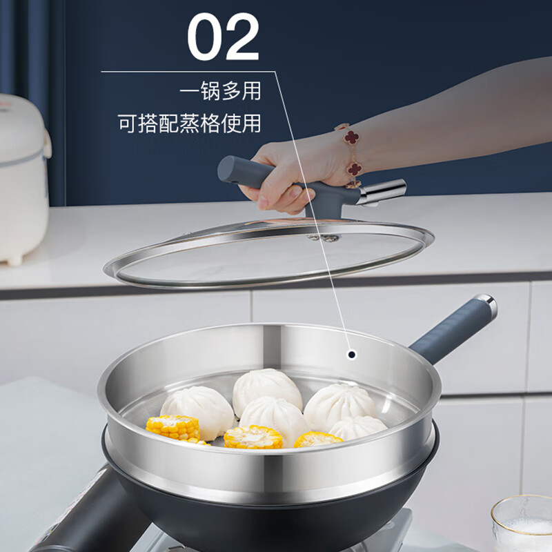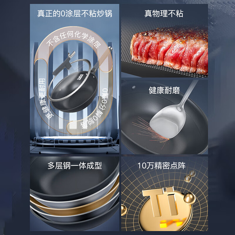 Debo 德铂炒锅不锈钢有钛不粘锅无涂层带蒸格锅盖硅胶铲DEP-DS404 DEP-DS404/个