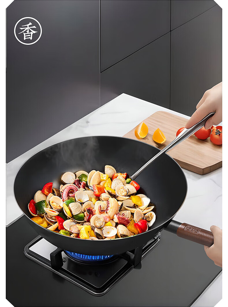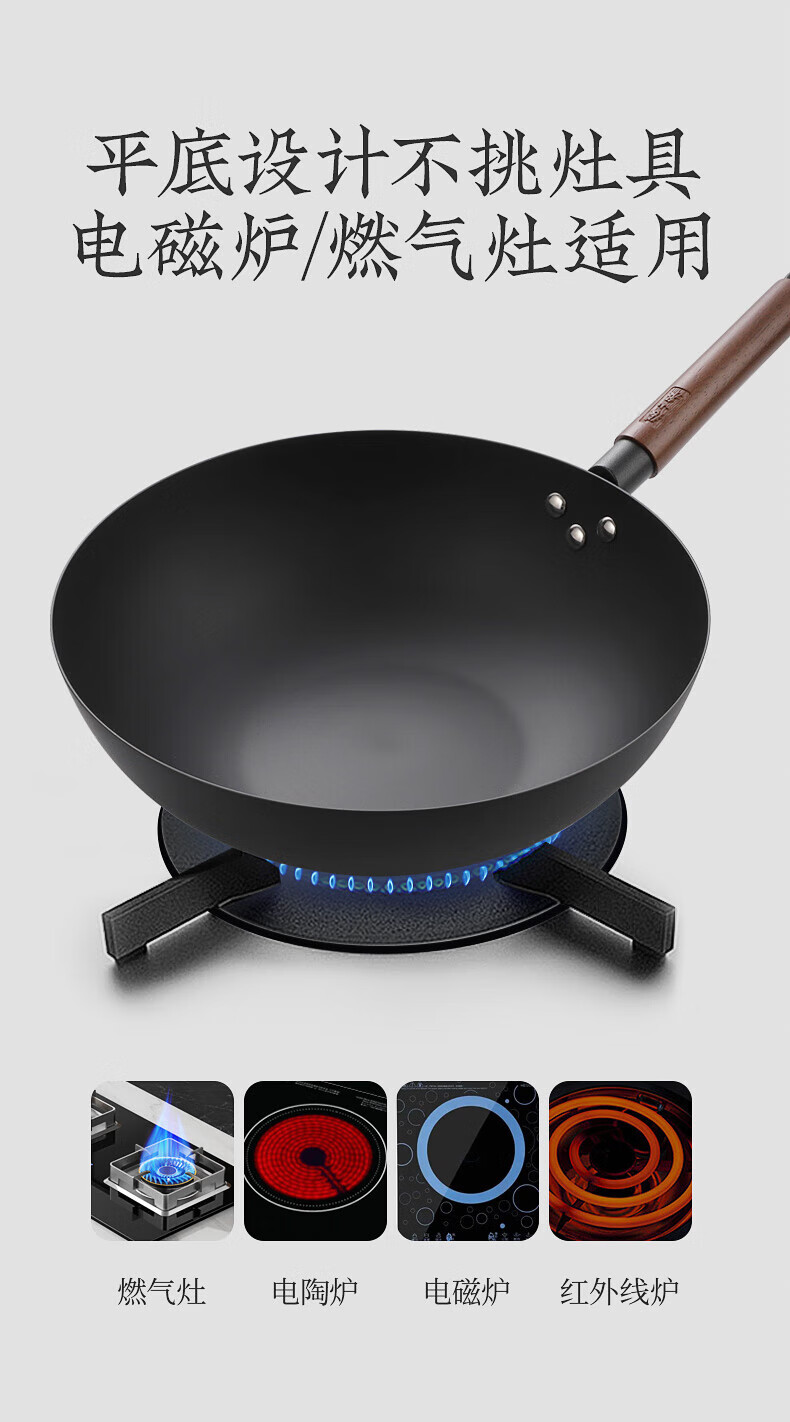 包装清单: 材质:熟铁/精铁 功能:无涂层,不易粘锅 直径:30.1-32cm 适用炉灶:通用"