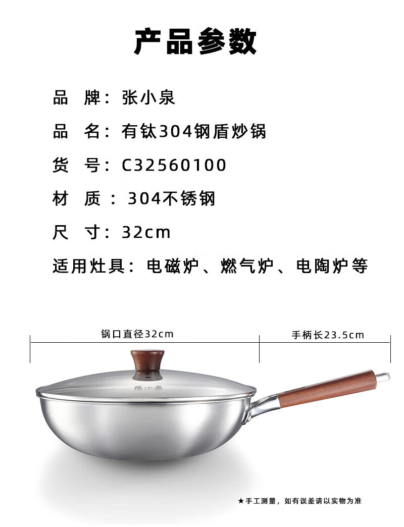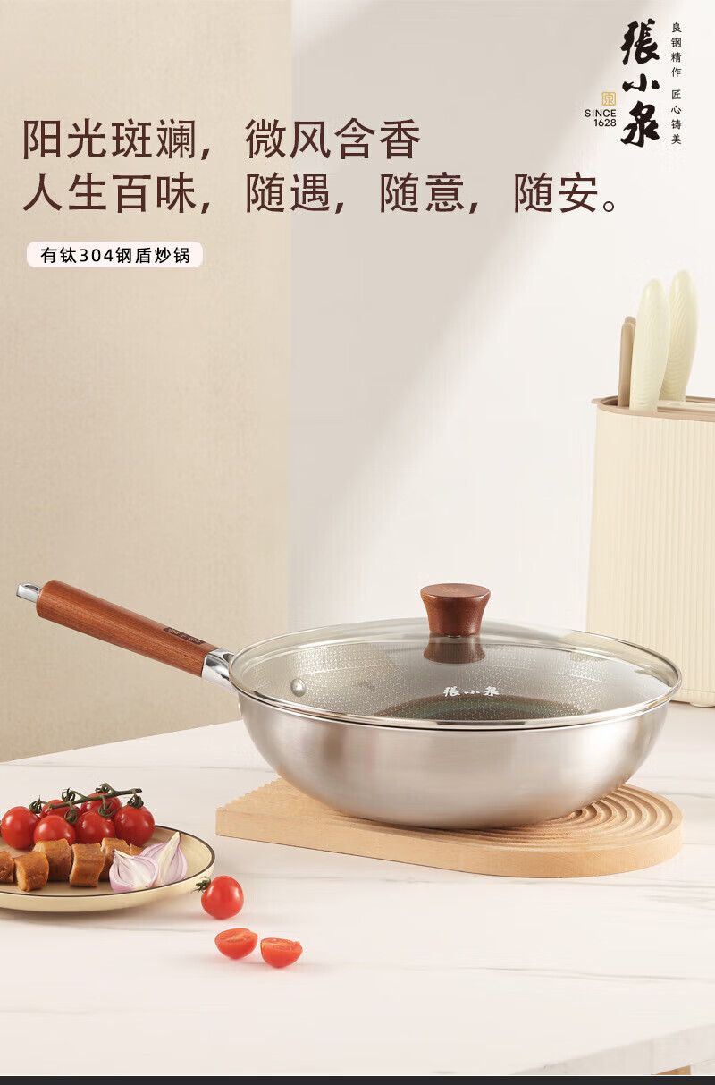 张小泉有钛304钢盾炒锅钛 不粘材质家用炒锅C32560100 32cm C32560100/个