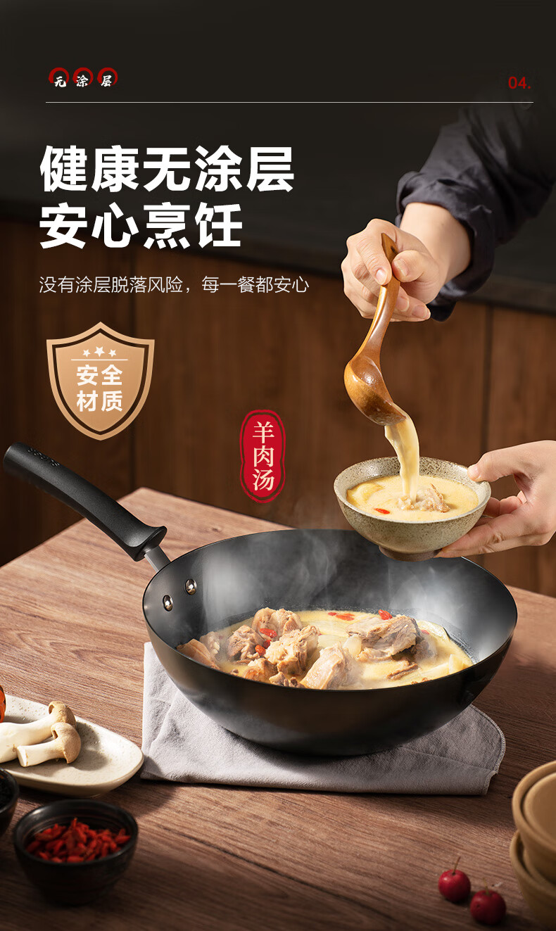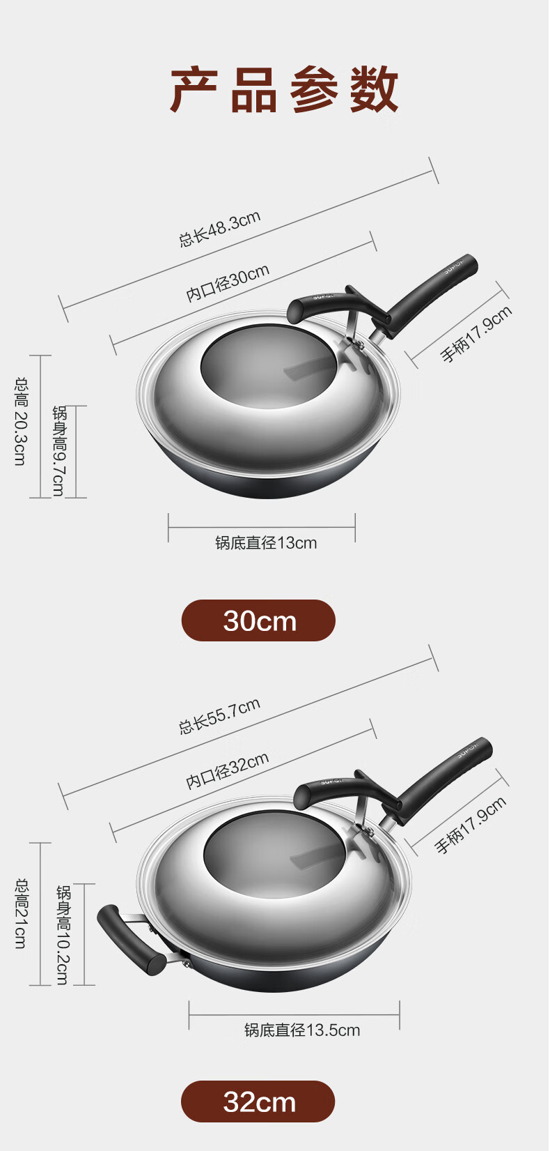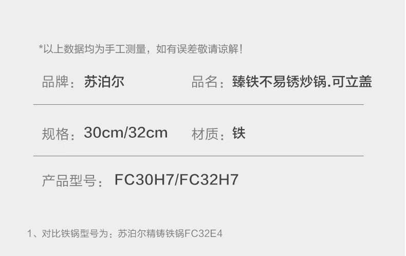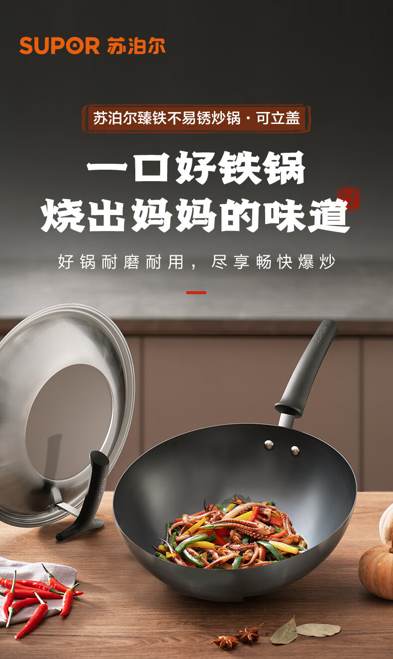 • 商品名称:苏泊尔supor臻铁无涂层精铁炒锅30cm可立盖燃气专用炒菜锅FC30H7 炒锅/个