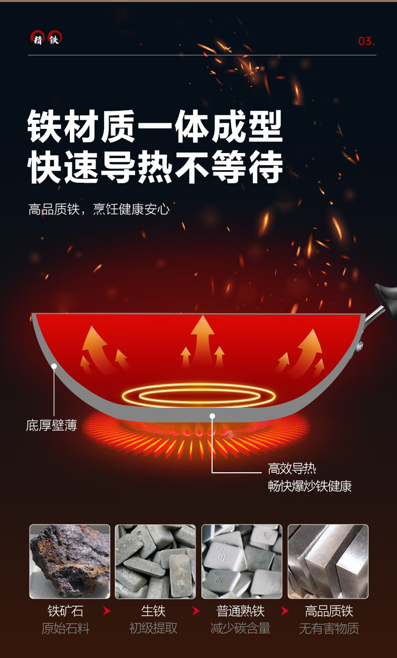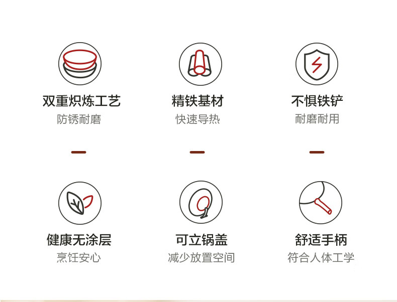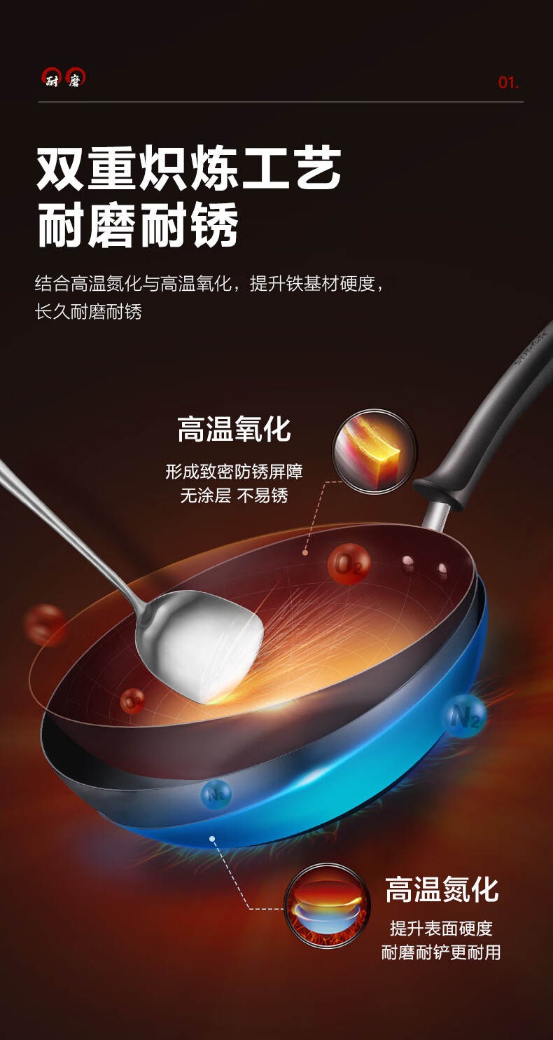 • 商品名称:苏泊尔supor臻铁无涂层精铁炒锅30cm可立盖燃气专用炒菜锅FC30H7 炒锅/个