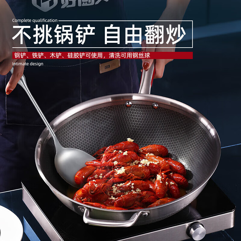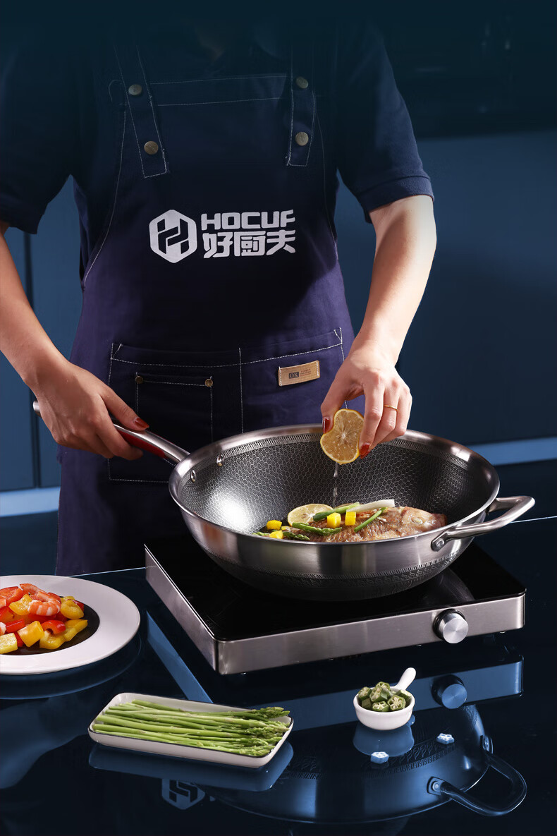 好厨夫(HOCUF)304不锈钢低油烟燃气灶电磁炉煤气灶通用 低油烟炒锅34cm 低油烟炒锅34cm/个