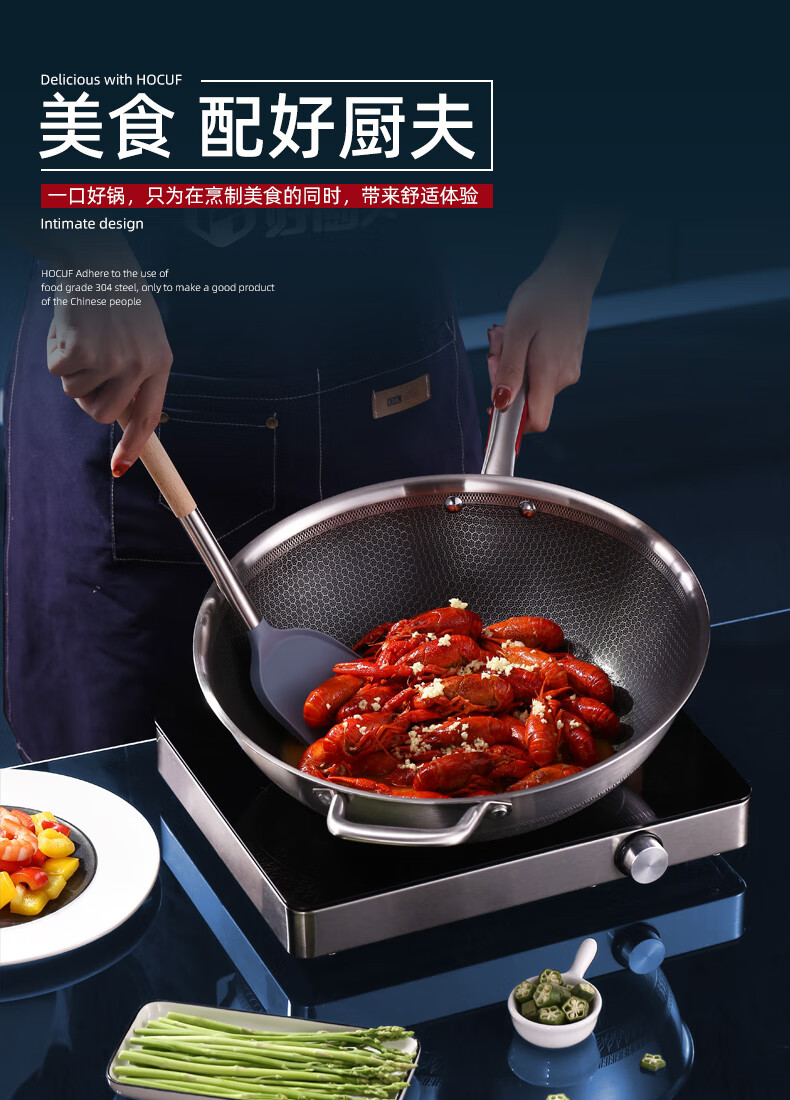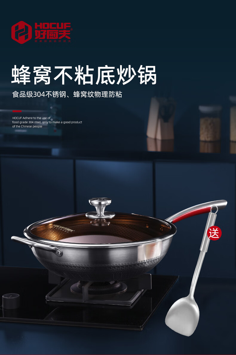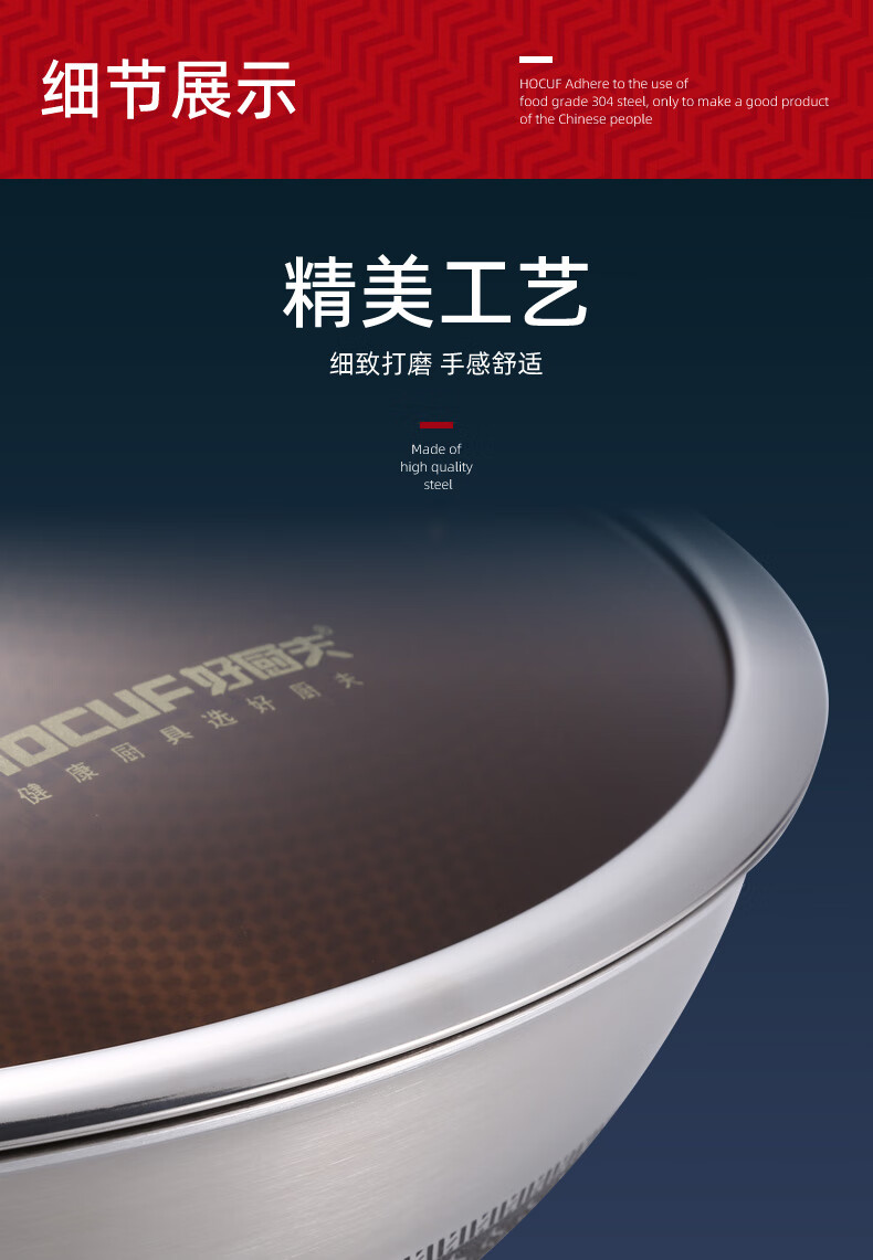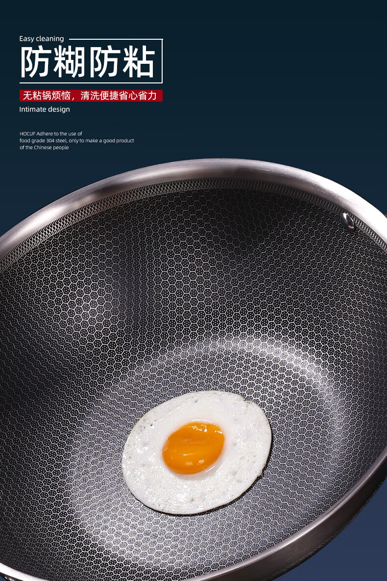 • 商品名称:好厨夫(HOCUF)304不锈钢低油烟燃气灶电磁炉煤气灶通用 低油烟炒锅34cm 低油烟炒锅34cm/个