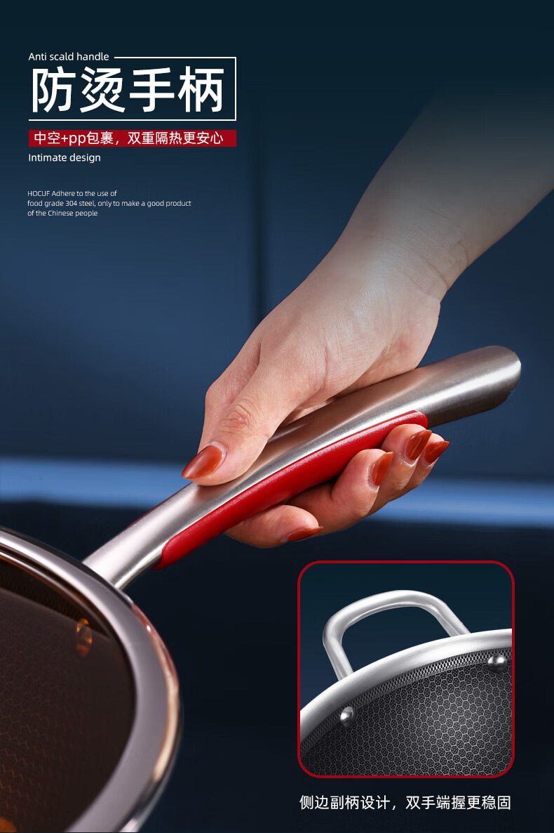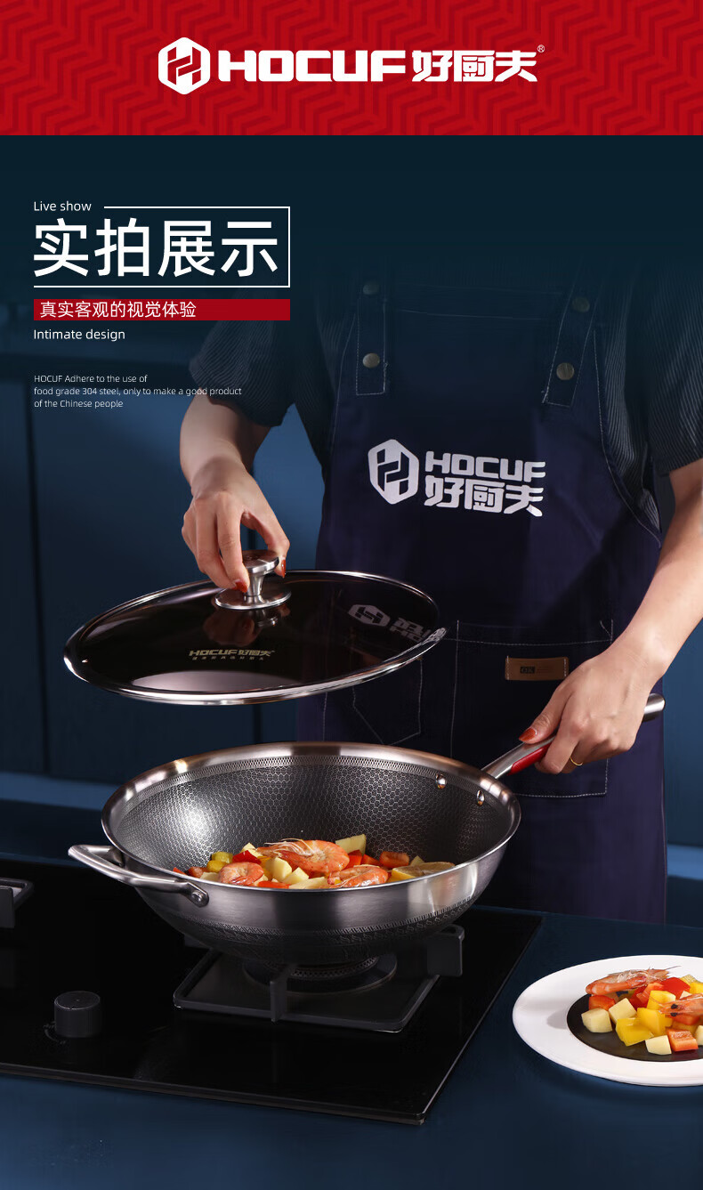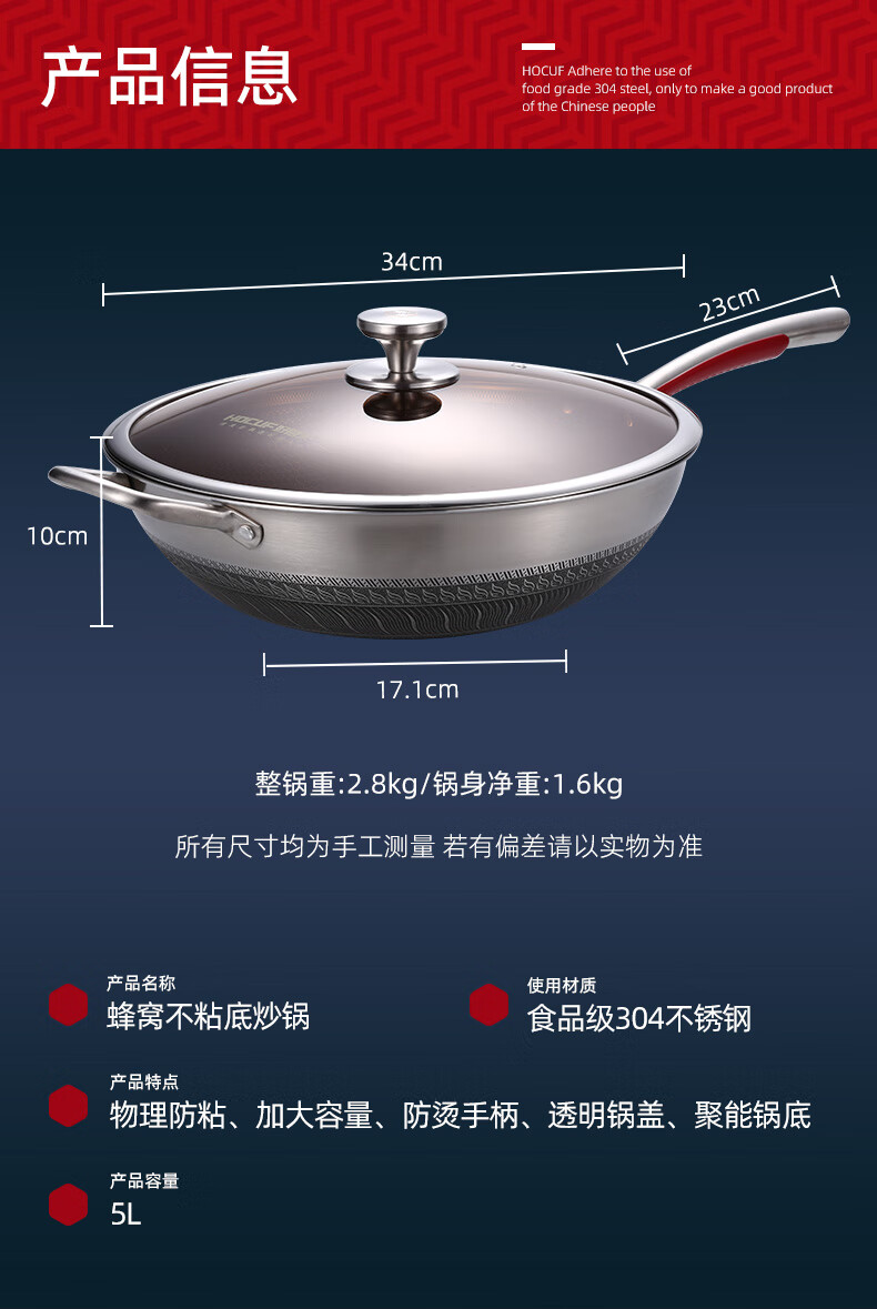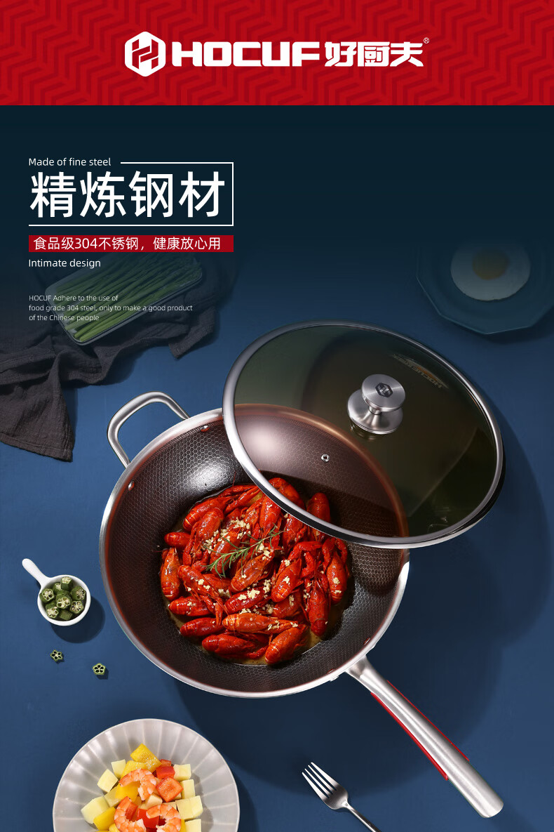 • 商品名称:好厨夫(HOCUF)304不锈钢低油烟燃气灶电磁炉煤气灶通用 低油烟炒锅34cm 低油烟炒锅34cm/个