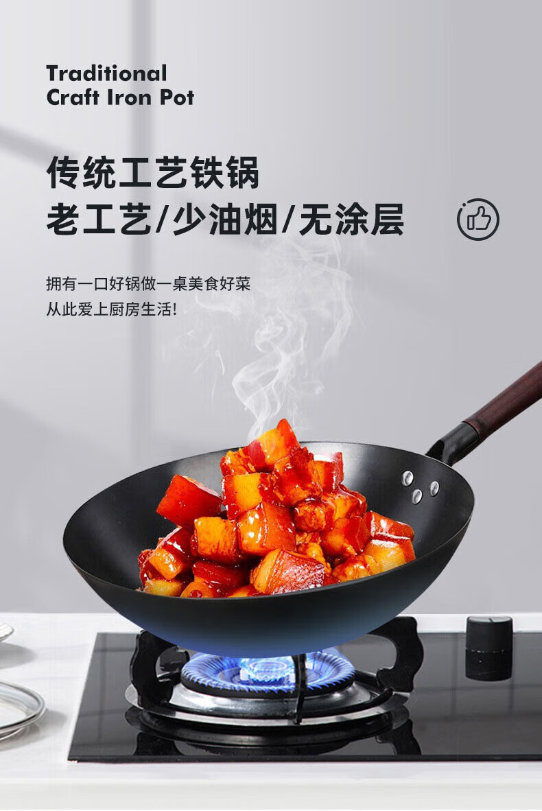 厨具  > 烹饪锅具  > 炒锅  >  希耀  >  希耀 加厚传统圆底老式锅家用厨房饭店煤燃气灶炒菜锅可定制 40榉木柄 40榉木柄/个