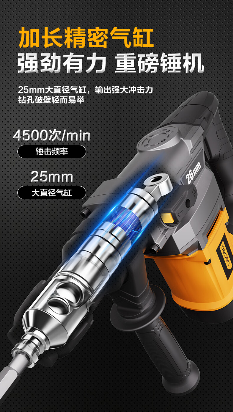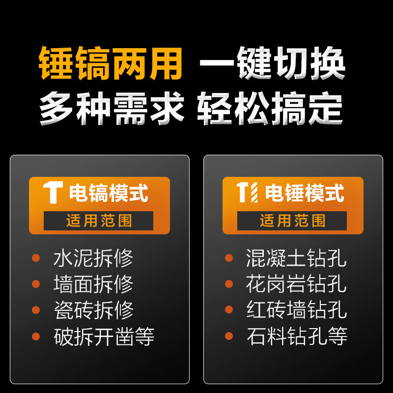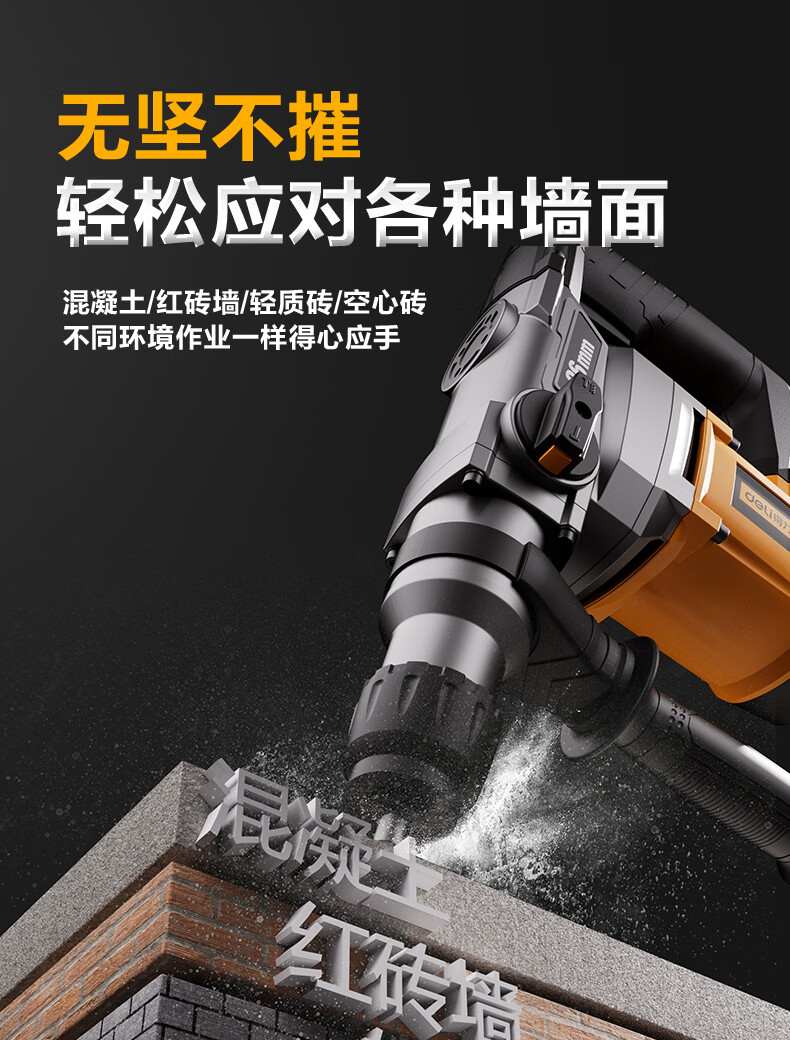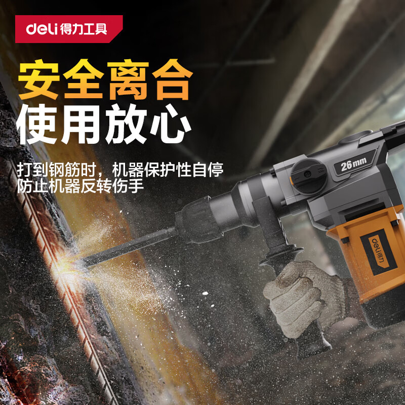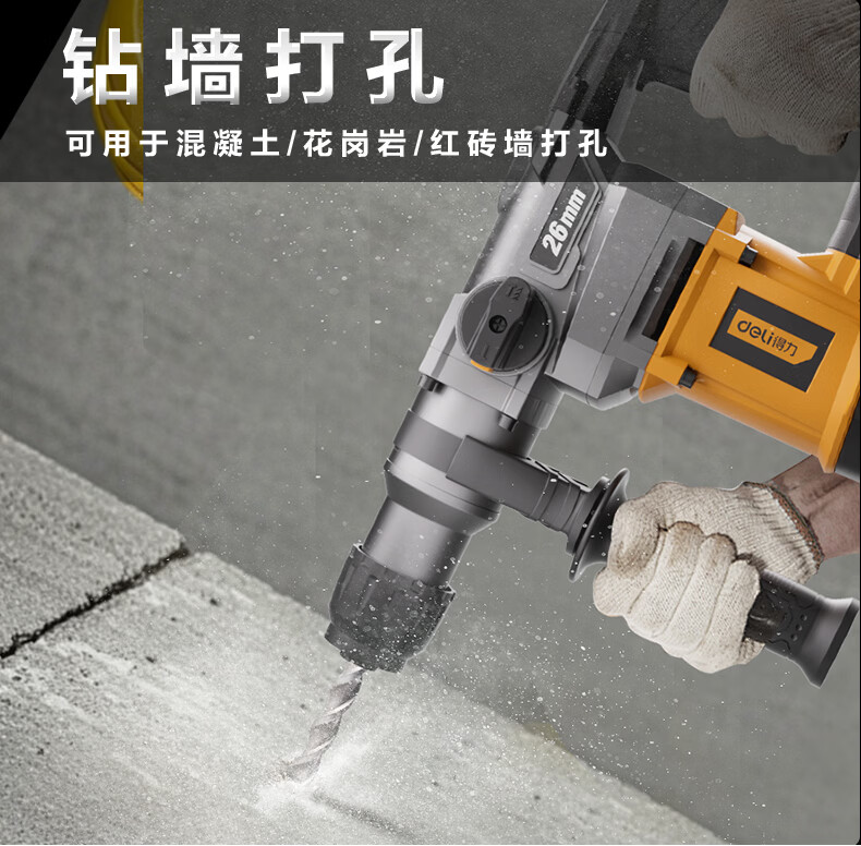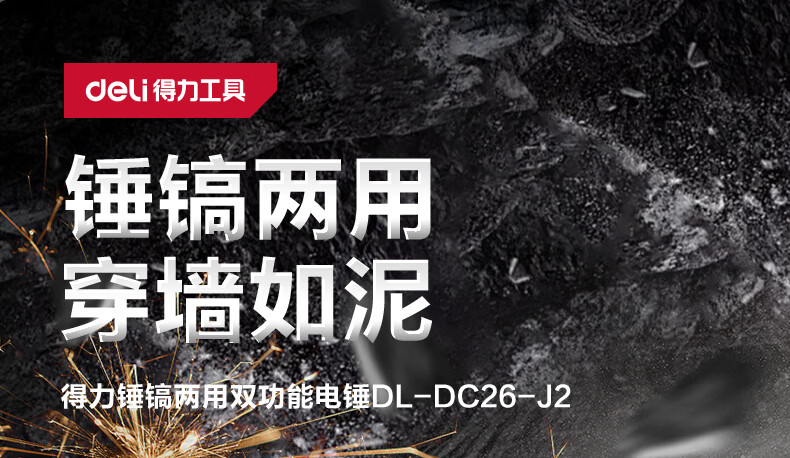 商品名称: 得力(deli)双功能重型电锤大功率冲击钻多功能电钻锤镐两用混凝土开凿套装 DL-DC26-J2/DL-DC26-S2/套