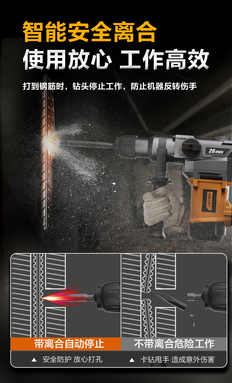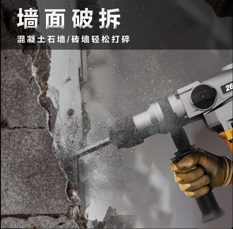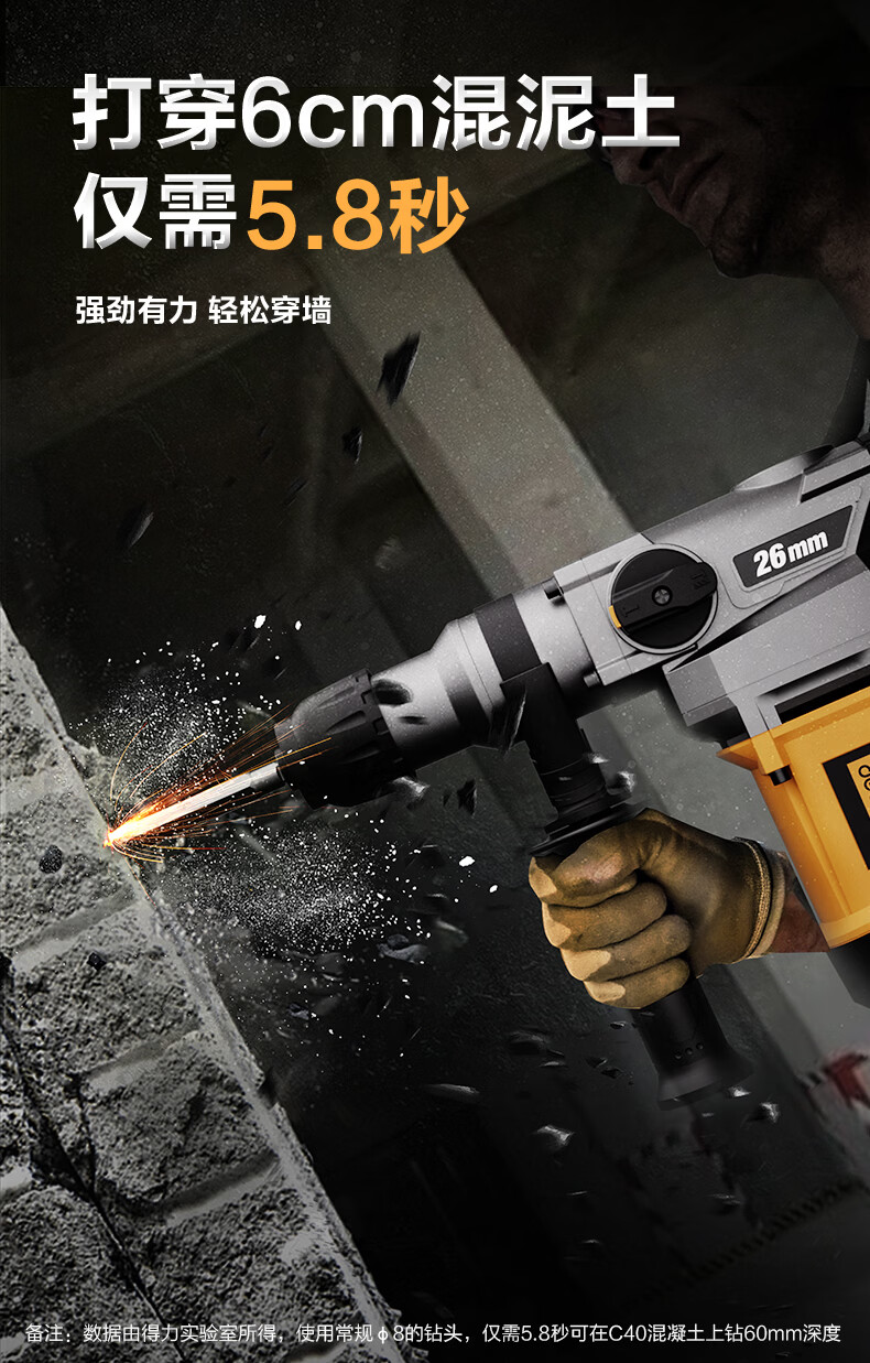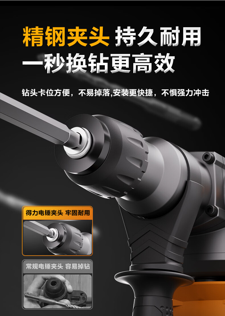 商品名称: 得力(deli)双功能重型电锤大功率冲击钻多功能电钻锤镐两用混凝土开凿套装 DL-DC26-J2/DL-DC26-S2/套