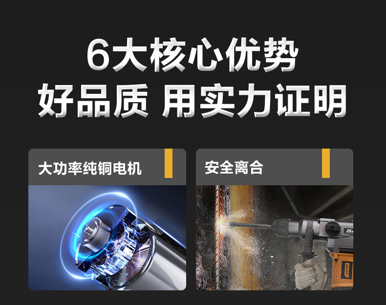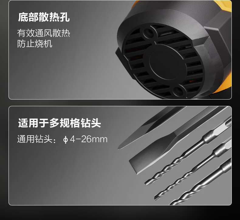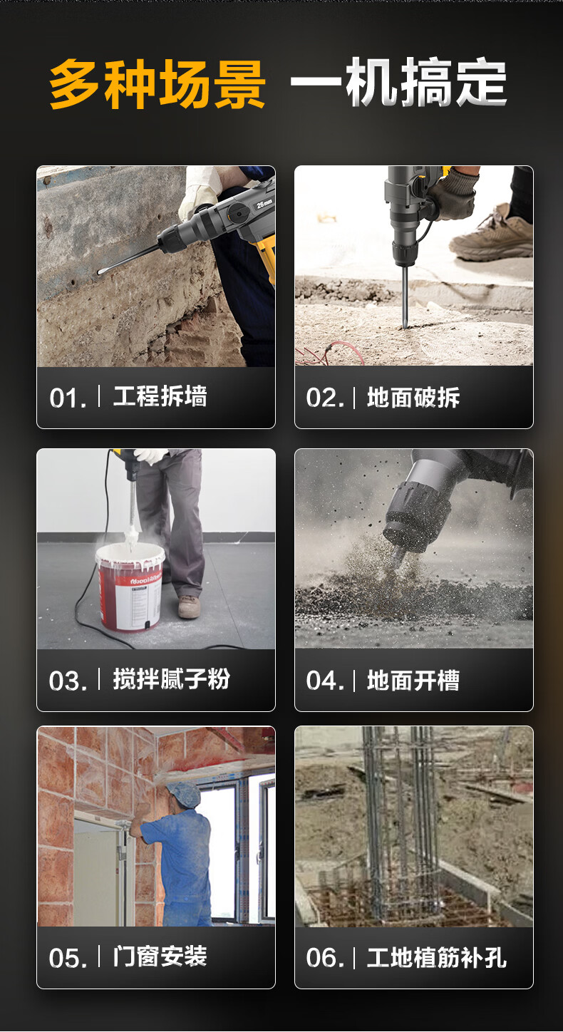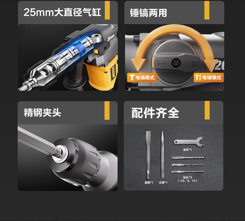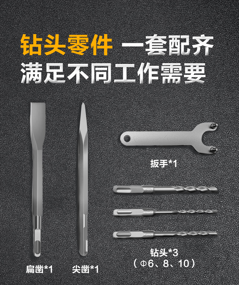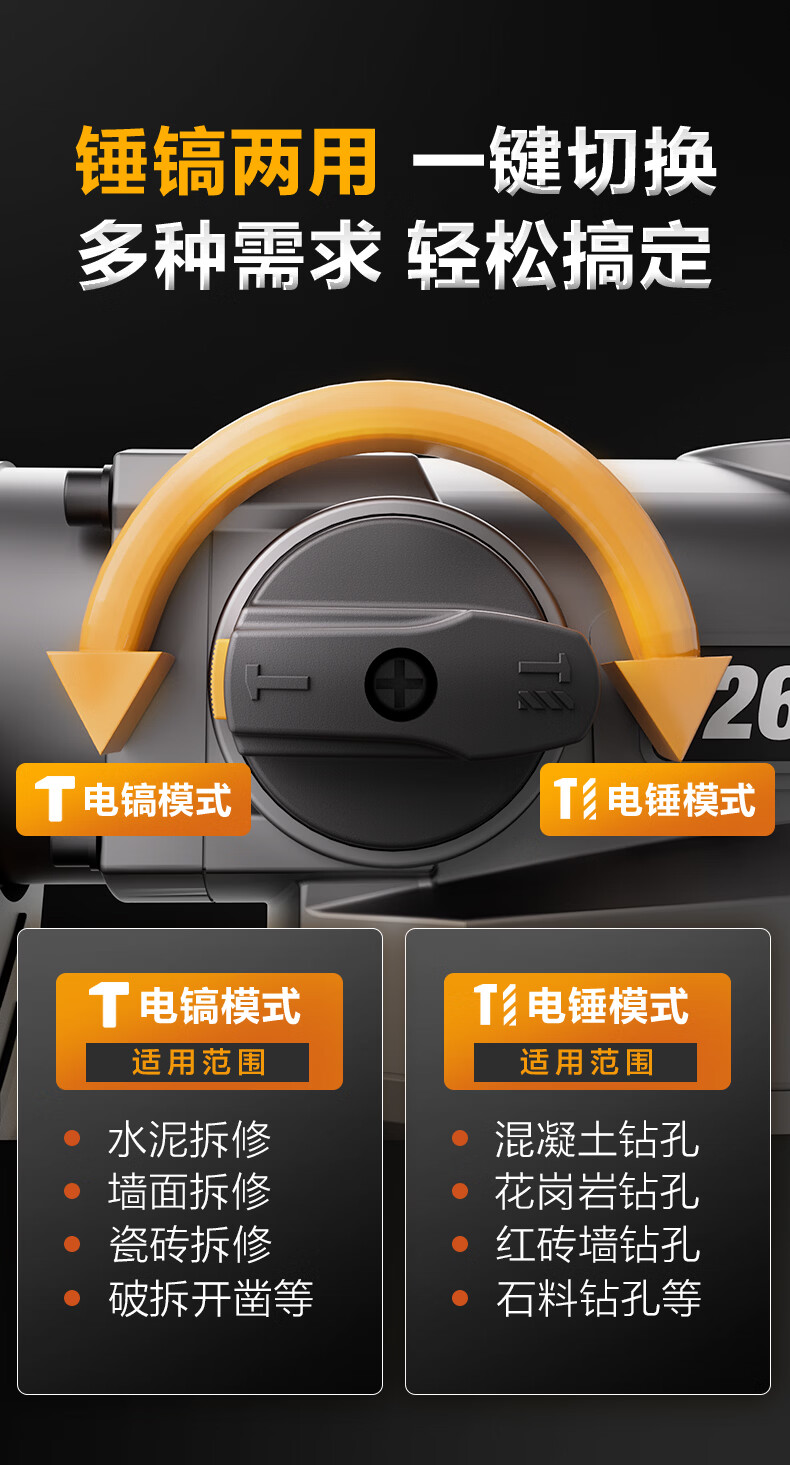 商品名称: 得力(deli)双功能重型电锤大功率冲击钻多功能电钻锤镐两用混凝土开凿套装 DL-DC26-J2/DL-DC26-S2/套